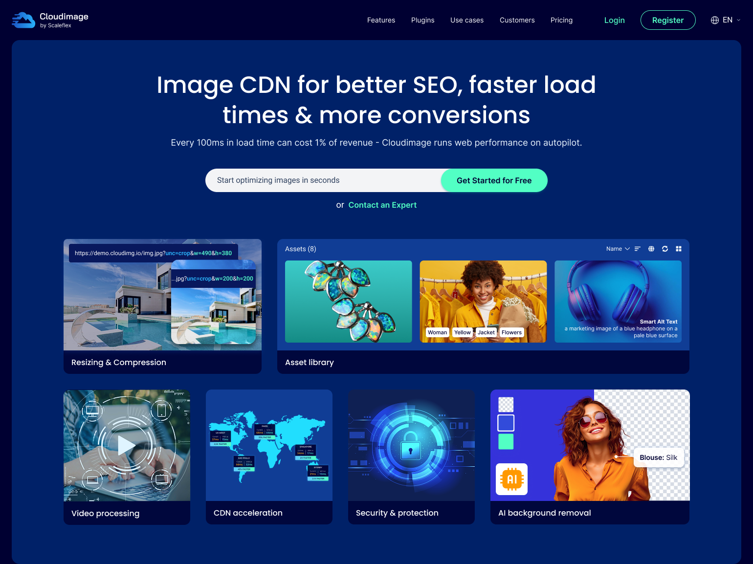 Cloudimage | N/A | Cloudimage offers a way to optimize and accelerate images for the web. Cloudimage automates the transformation and optimization of images on the fly and accelerates their distribution via the Content Delivery Network (CDN). Cloudimage helps web pages to become faster and lighter, to improve both SEO and the user experience of the web or mobile application. Built by Scaleflex, the Cloudimage plugin helps users to: Optimize images on the fly; image URLs will be… | $59 per month |