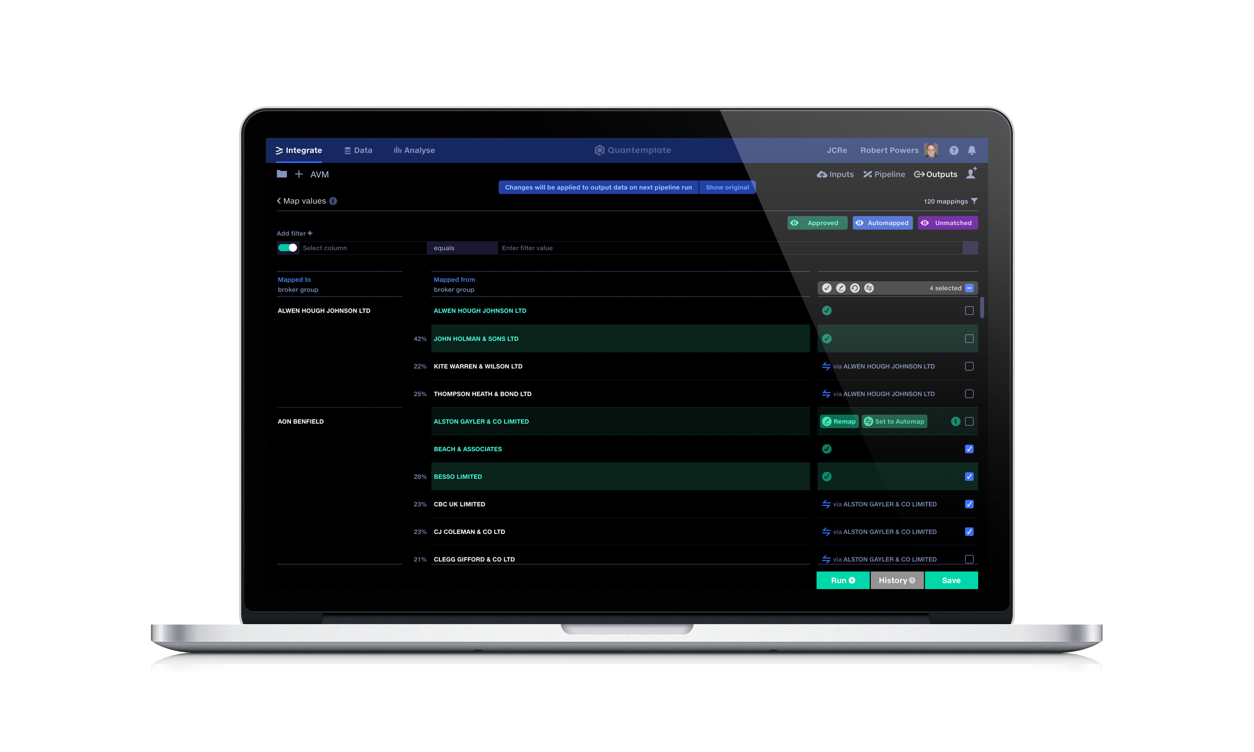 Quantemplate | Enterprise companies (1,001+ employees) | Quantemplate's data integration, automation and analytics platform aims to turn insurance data sources into trusted insights. It is presented as a data preparation solution for insurance professionals, automating data clean-up, then performing calculations, augmenting with external data and doing validation checks – all without writing a single line of code. The vendor describes its benefits: Comprehensive: full data transformation feature set with over 50… | N/A |