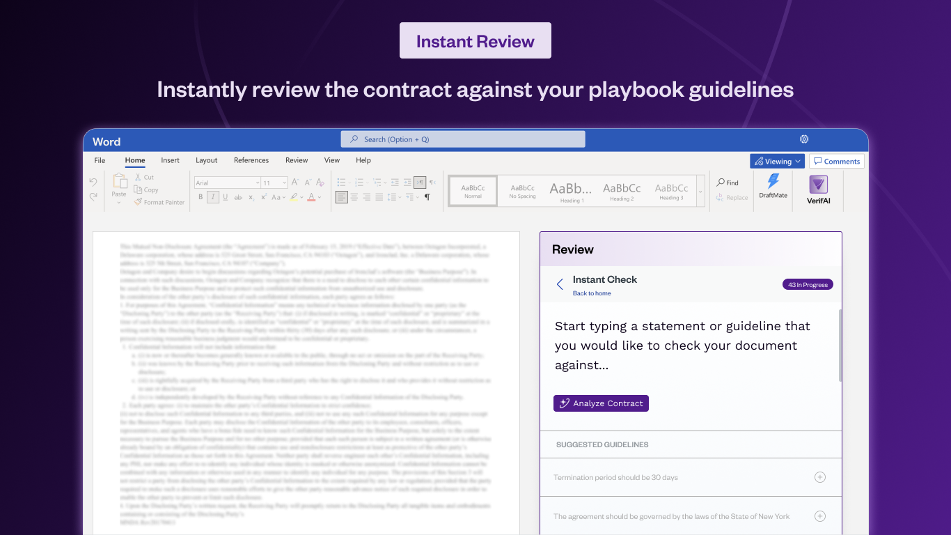 Amto ContractIQ | N/A | Amto ContractIQ offers an MS Office add-in for contract drafting and review, with integration into Microsoft Word. It is used to: ✅ Revise or Improve Existing Contracts: Generate any type of clause with simple instructions or use inbuilt smart suggestions. ✅ Generate New Contracts from Scratch: Create contracts from the ground up. The platform guides users through the process to ensure no detail is missed. ✅ Review Contracts Like an… | N/A | |
