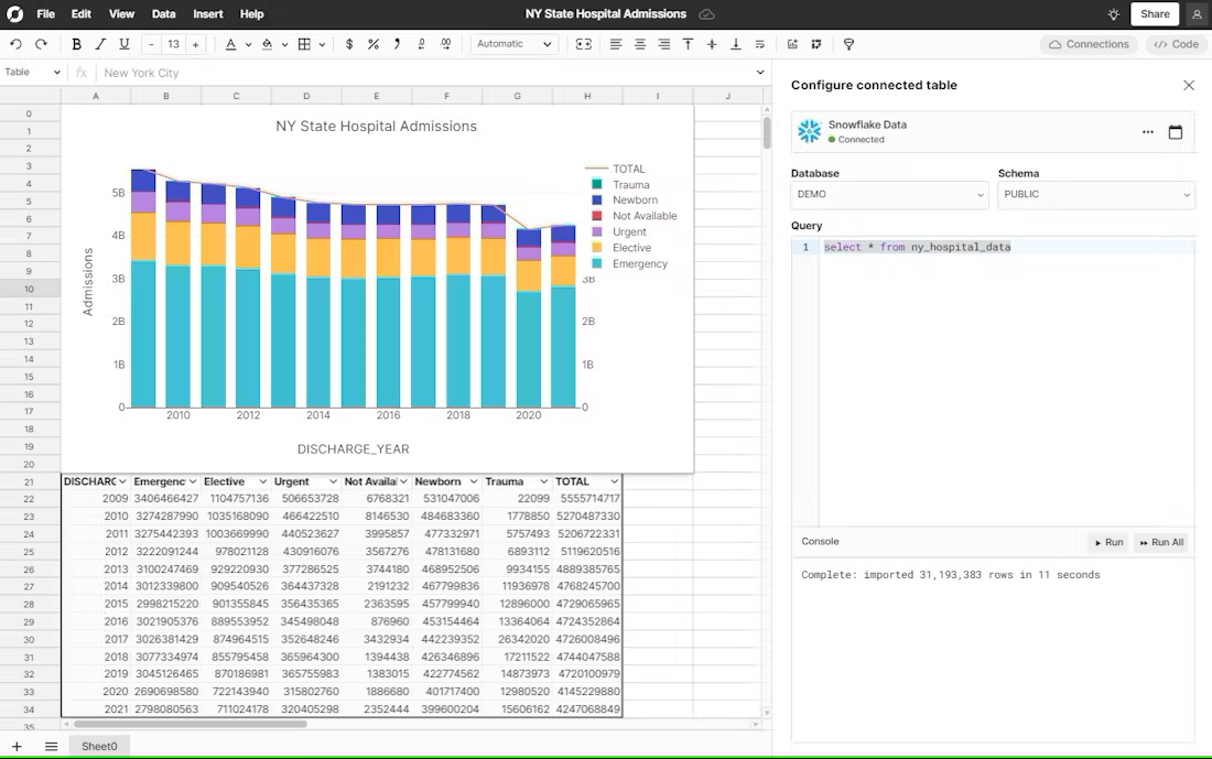 Row Zero | N/A | Row Zero is a spreadsheet for big data that works just like Excel and Google Sheets, but can handle 1+ billion rows, process data faster, and connect live to a data warehouse and other data sources. Row Zero spreadsheets can pull entire database tables into a spreadsheet, letting non-technical users build live pivot tables, graphs, models, and metrics on data from a data warehouse. Users can also open, edit, and share multi-GB files (CSV, parquet, txt,… | $0 |