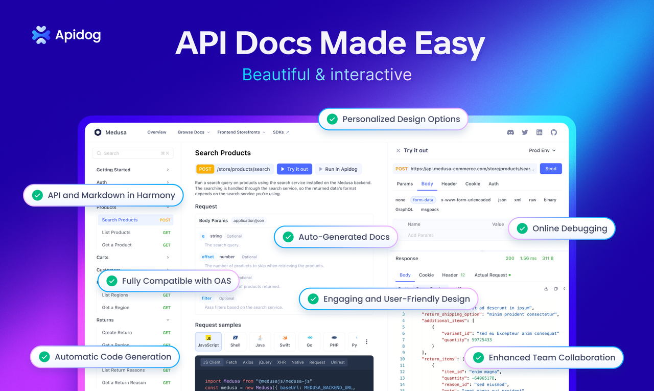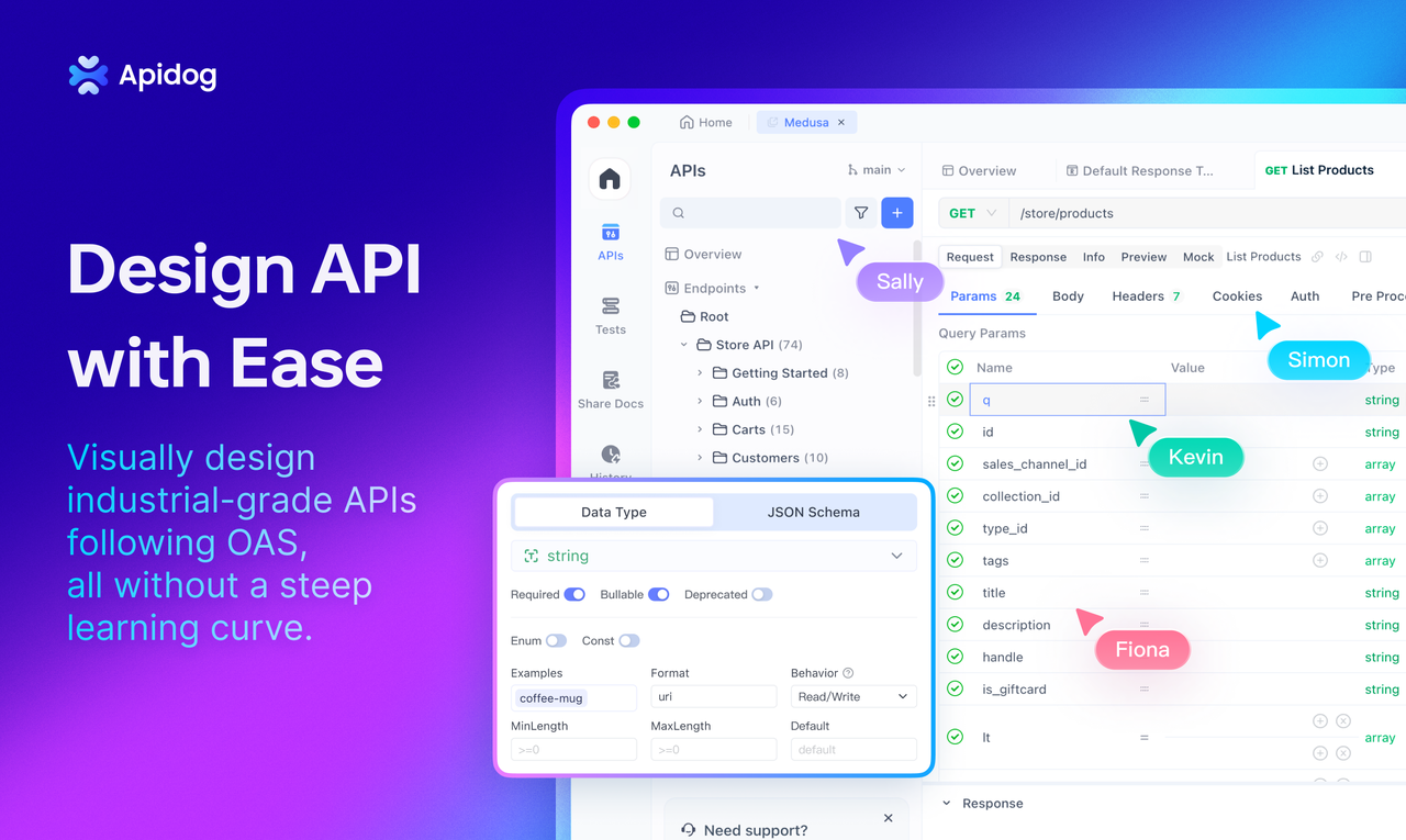Apidog | N/A | Apidog is a platform designed to simplify and enhance the entire API lifecycle, offering a range of features to support API design, debugging, testing, documentation, management, and collaboration. Here’s an overview of its key features: 1. API Design and Documentation Visual interface for API design: Apidog provides an interface for defining APIs in a code-less way, covering endpoints, request and response formats, data schemas, and authentication methods. It is… | $0 up to 4 collaborators and 5 projects | |