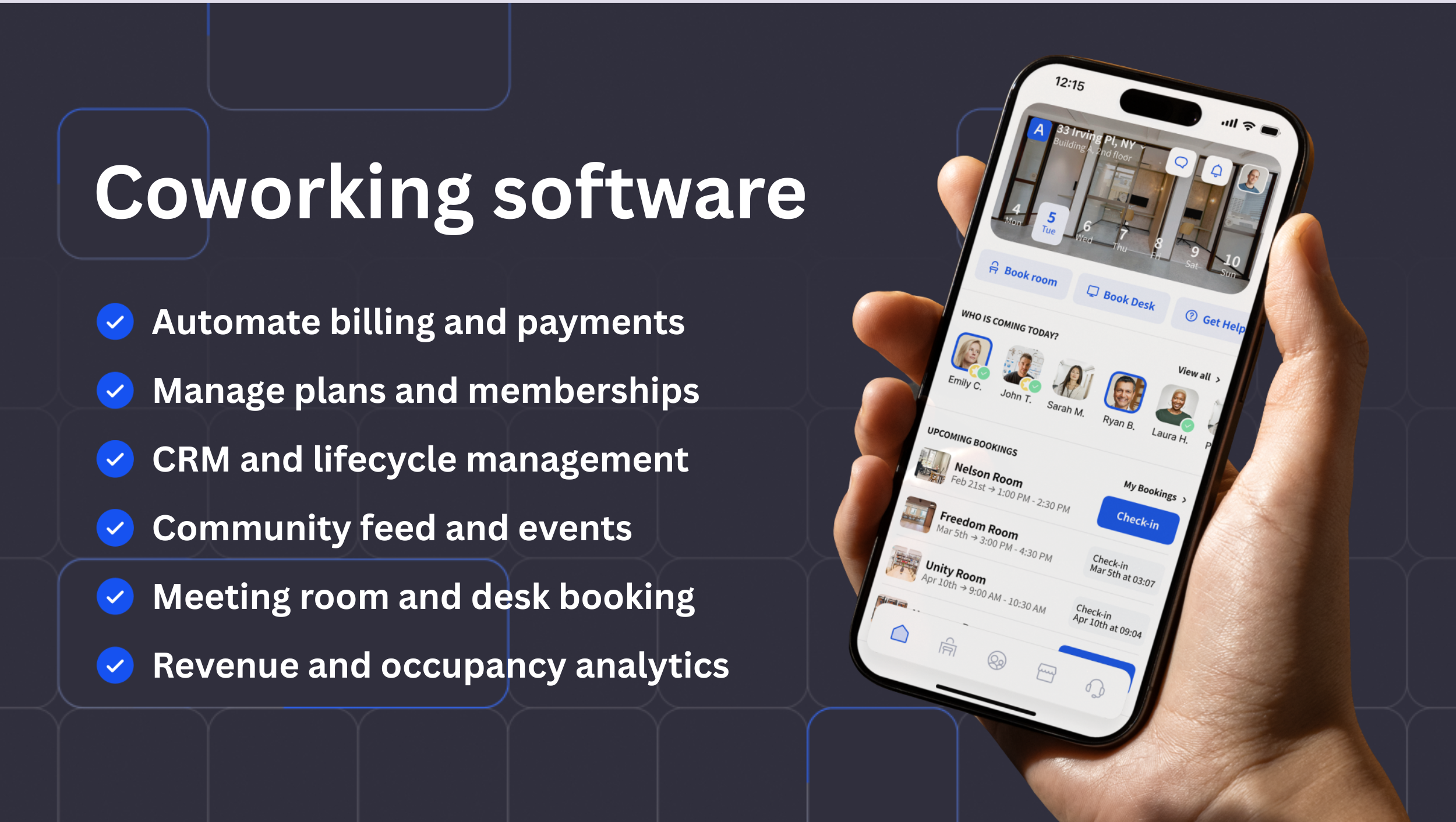 Cobot | N/A | Cobot is a provider of management software for coworking spaces, office hubs, and flexible workspaces worldwide. The vendor boasts affordable pricing and transparency, multilingual support, top-rated tools, and a team committed to helping a space grow. Every flexible space is different, but whatever the user's needs are, Cobot presents a toolset to improve the management experience. Users can manage bookable resources, integrate with the leading feature… | $59 Up to 15 members |
