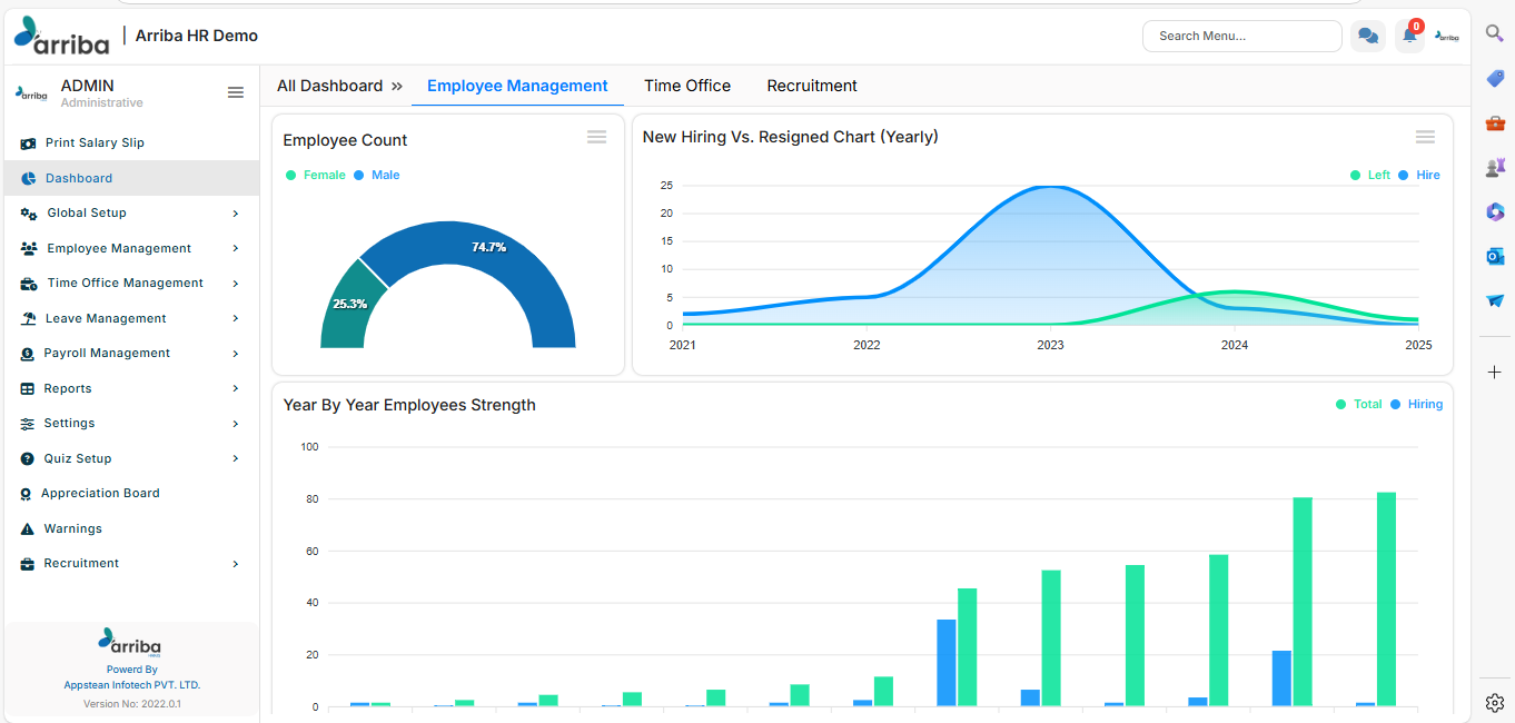 Arriba HRMS | N/A | Arriba HRMS is a solution designed to simplify every aspect of human resource management, from payroll automation to compliance monitoring. Key features include: Payroll automation Attendance and leave management Recruitment and onboarding Performance management Employee self-service portal HR compliance tracking Analytics and reporting Employee records management Time and expense… | N/A | |
