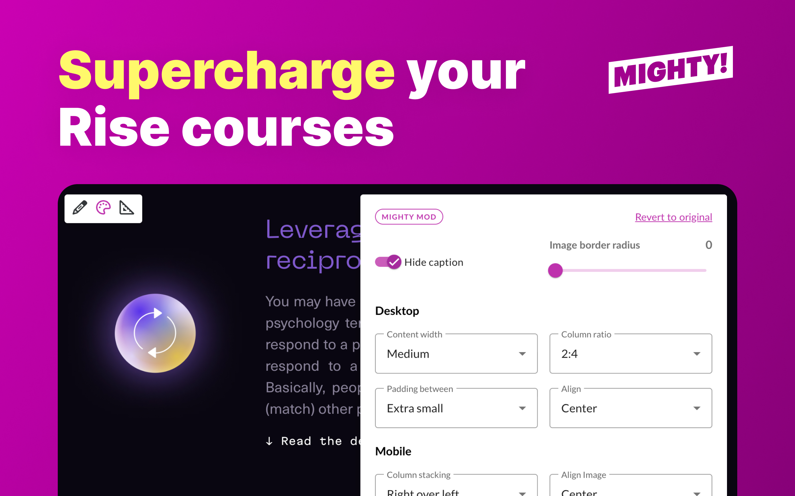 Mighty | N/A | Mighty is a Chrome extension designed to enhance content creation within Articulate Rise 360, a popular e-learning platform. By integrating with it, Mighty unlocks advanced authoring features that allow users to create more engaging and dynamic courses. It simplifies content authoring by offering improved formatting, additional interactive elements, and streamlined workflows, making it easier to build rich, interactive… | $47 per month per user |
