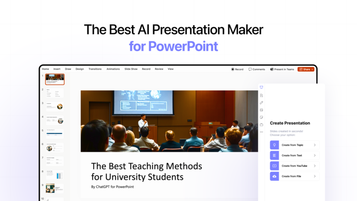 Twistly | N/A | Twistly is an AI add-in for PowerPoint, enabling users to create, edit, and enhance presentations within PowerPoint. Twistly offers a suite of features including AI slide generation, translation, image creation, speaker notes generation, and conversion from text, video, or PDF to PowerPoint. Built for professionals, educators, and teams, Twistly.ai helps to streamline the presentation workflow, helping users save hours of manual work while ensuring their slides look polished and… | $10 per month per user |