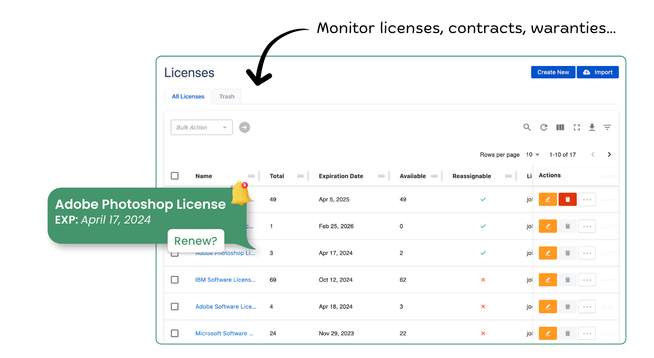 AssetLoom | Small Businesses (1-50 employees) | AssetLoom is an IT asset management platform designed to help businesses track, manage, and optimize physical and digital assets throughout their lifecycle. It offers features like real-time asset tracking, automated check-ins and check-outs, inventory management, and license monitoring. With tools such as bulk actions, custody verification, and automated notifications, AssetLoom aims to ensure better resource control and reduces manual workload. Designed for businesses of all sizes, it helps… | $0 per month per seat | |