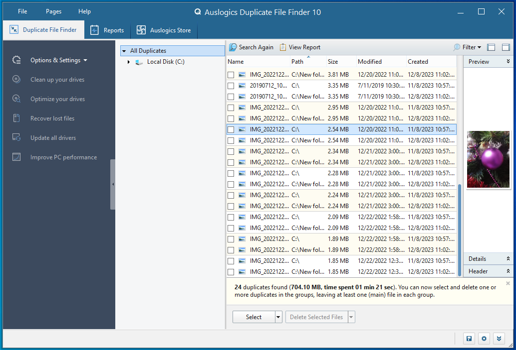 | ScreenShots | Auslogics Duplicate File Finder Screenshots |