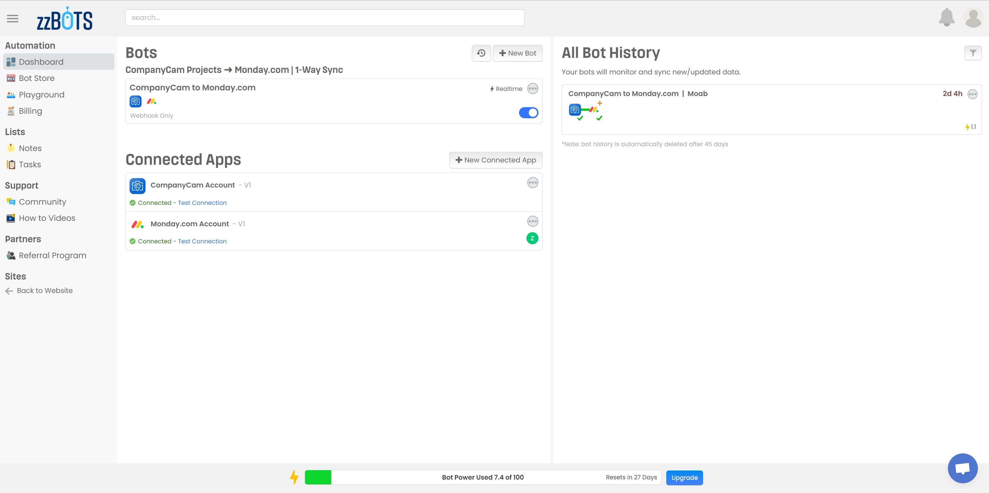 | ScreenShots | Automate.io Screenshots | zzBots Screenshots |
