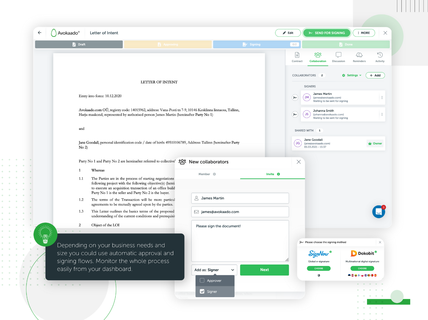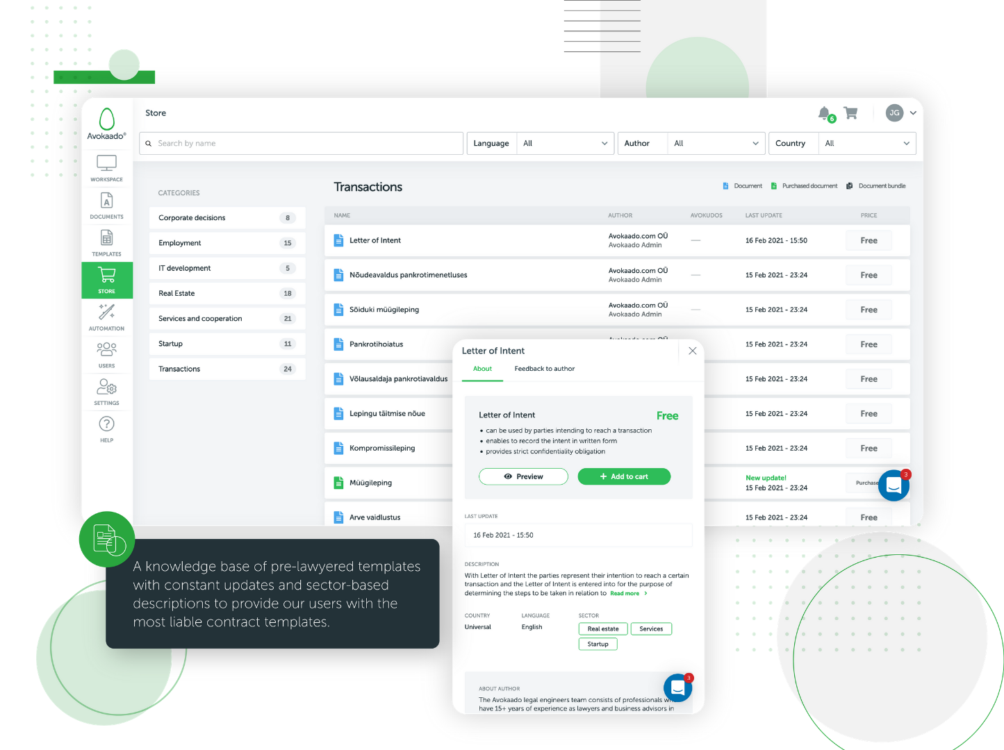 Avokaado | N/A | Avokaado is a contract lifecycle management platform that helps businesses manage, create and collaborate on documents and contracts at every stage of the document lifecycle. | N/A | |