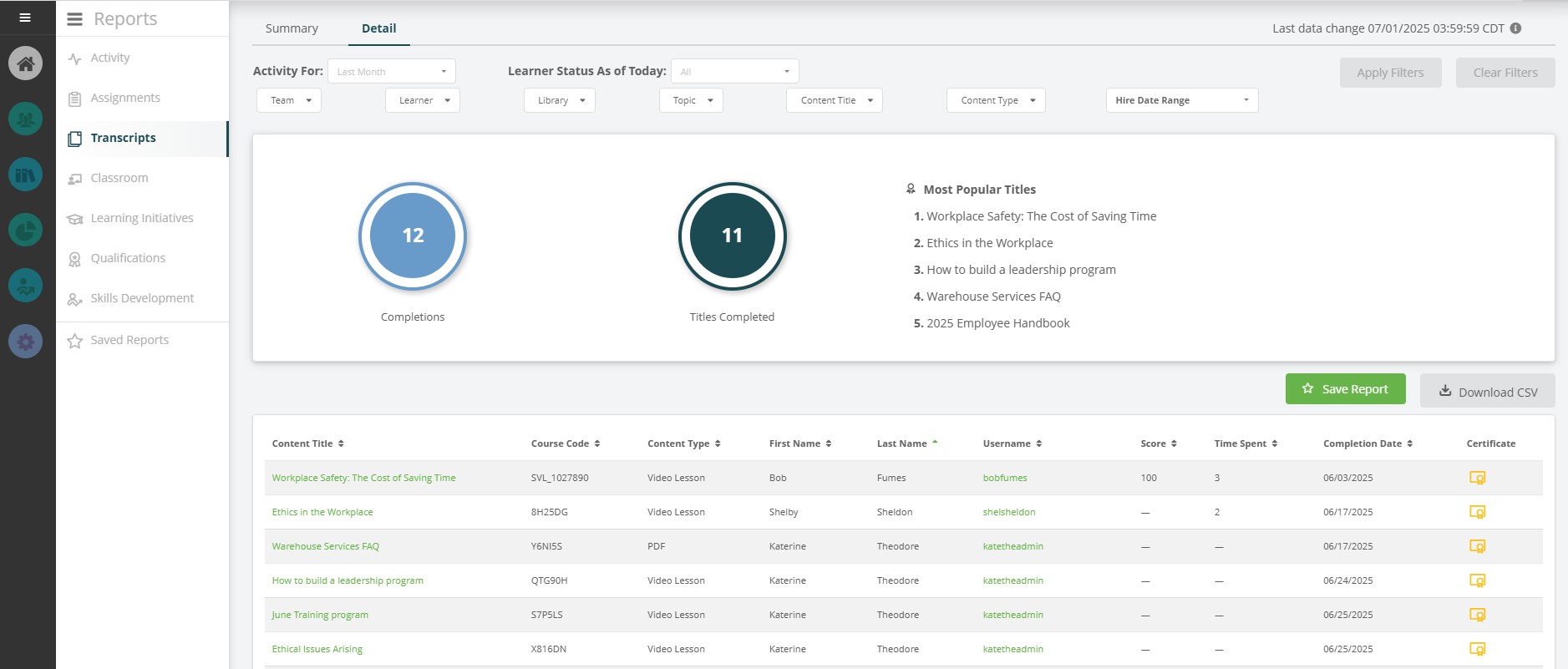 Learning Admin Console makes it easy to peek at what is going on in your portal and open up connected reporting when needed.