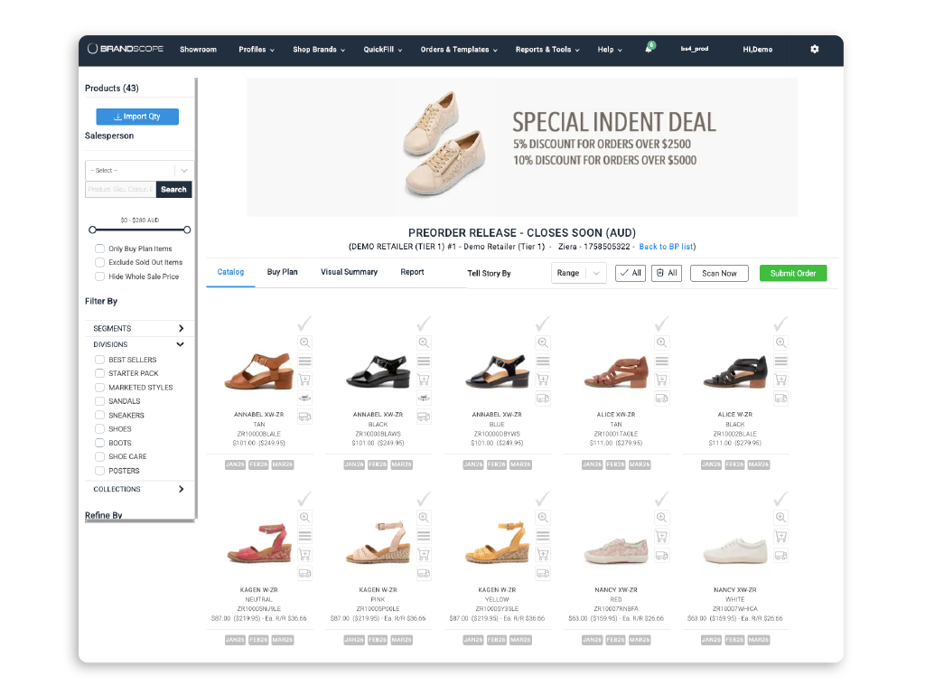 Brandscope | Mid-Size Companies (51-1,000 employees) | Brandscope is a B2B wholesale eCommerce sales and marketing platform used by brands, agents, and retailers/dealers to conduct wholesale trade. The platform supports both pre-book and refill wholesale trading models, enabling brands to plan seasonal orders while also managing ongoing replenishment. Brandscope empowers brands to sell more products through improved sales team and retailer collaboration, management of digital marketing and product education assets, and… | $500 per month per installation | |