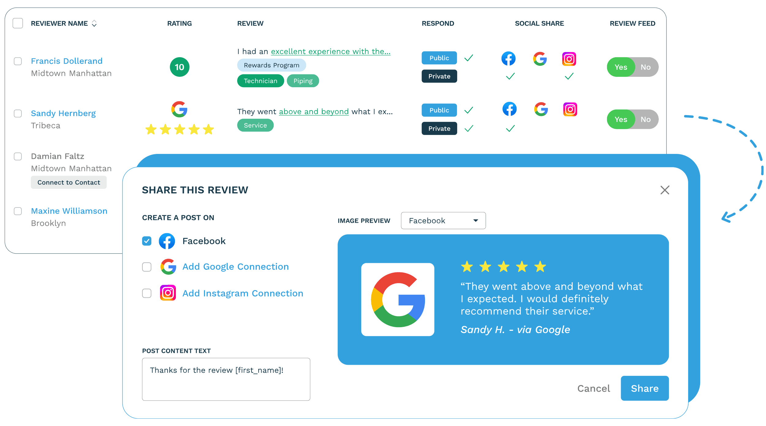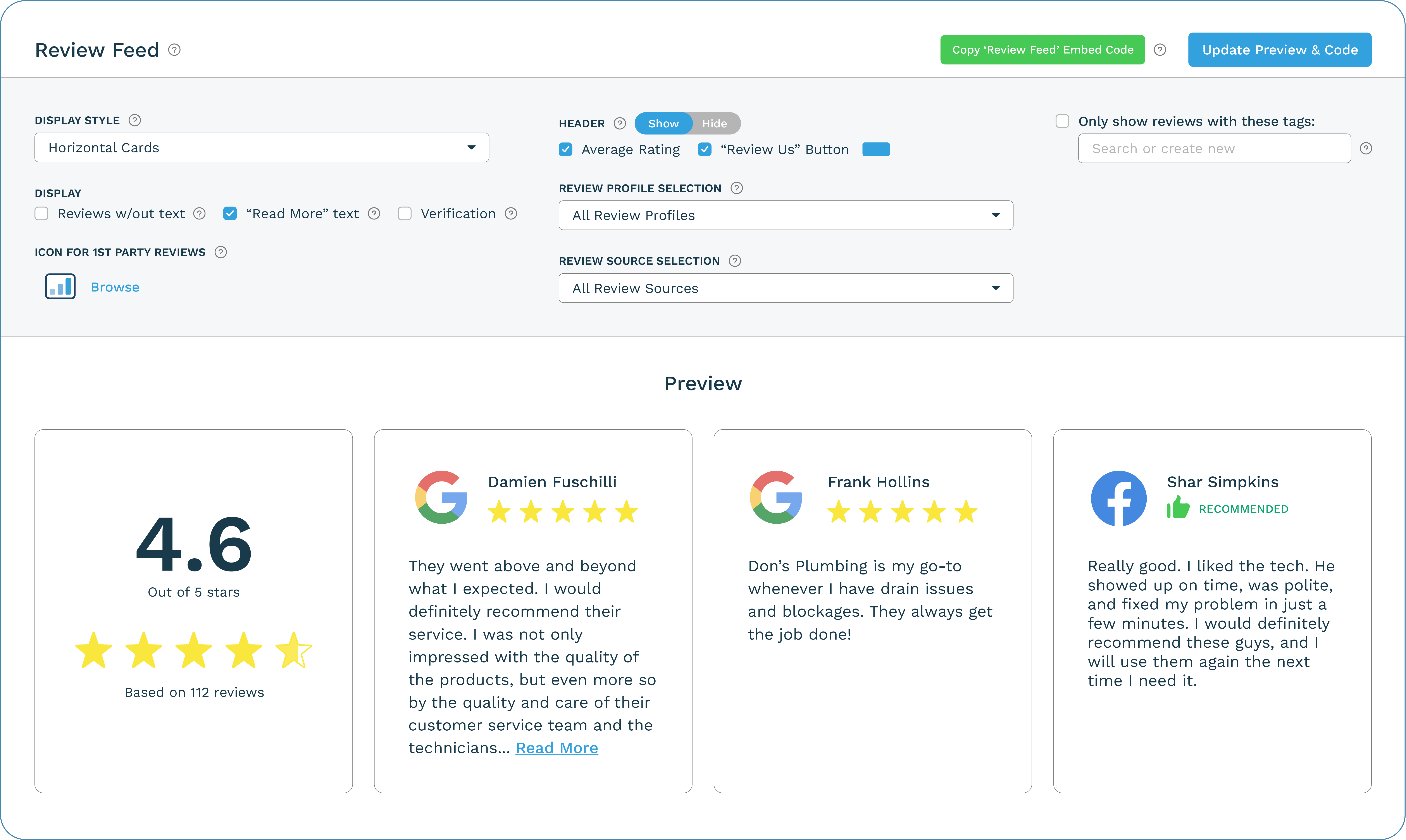 ReputationStacker | N/A | ReputationStacker's review management software helps businesses get more reviews, rank higher in local search, and win customers automatically. It is offered as a completely hands-off online reputation management system. ReputationStacker’s reporting suite turns qualitative feedback from reviews and NPS surveys into quantified, actionable data which can be used to improve a business, driving more positive reviews and better… | $79 per month |