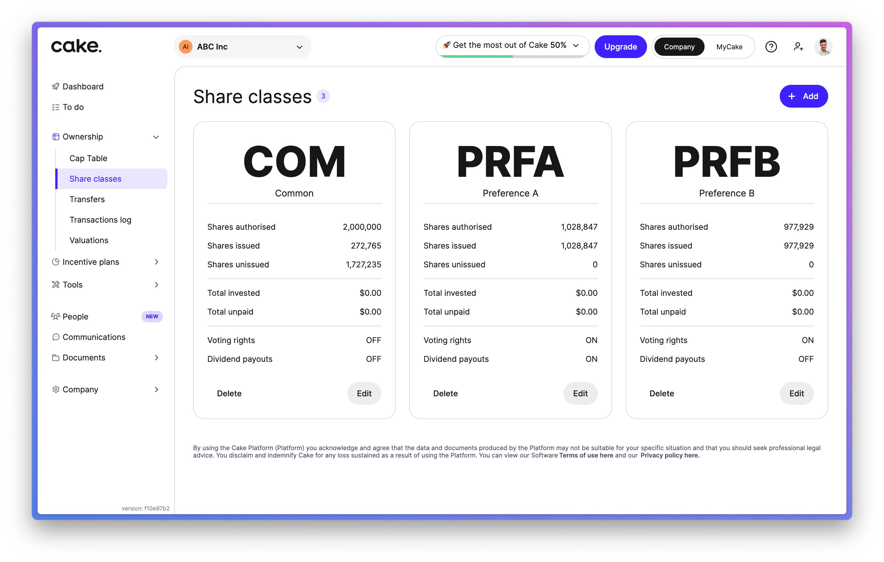 Cake Equity | N/A | Cake Equity provides a platform to help startups and scaleups raise capital, manage shareholders and grow their business. | $0 per month up to 5 stakeholders | |