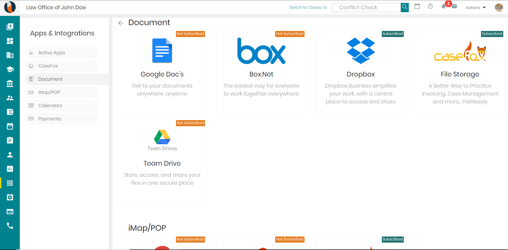 CaseFox | N/A | CaseFox offers their flagship application as a secure way to management billing and payment for law firms, featuring role-based access and permissions, and integrations with most popular accounting applications. | $45 per month per user | |