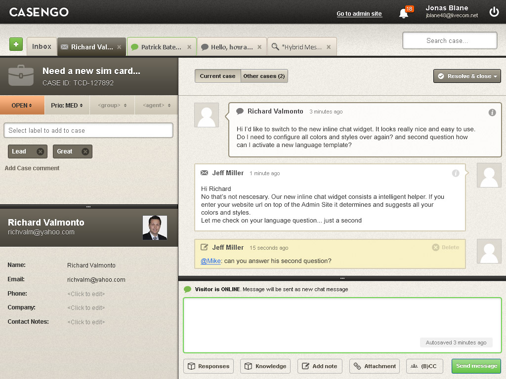 Casengo's cloud application for customer support empowers online retailers and other small businesses to respond to customer questions faster and better than ever. One team inbox can be used for customer chats, emails and social media posts.