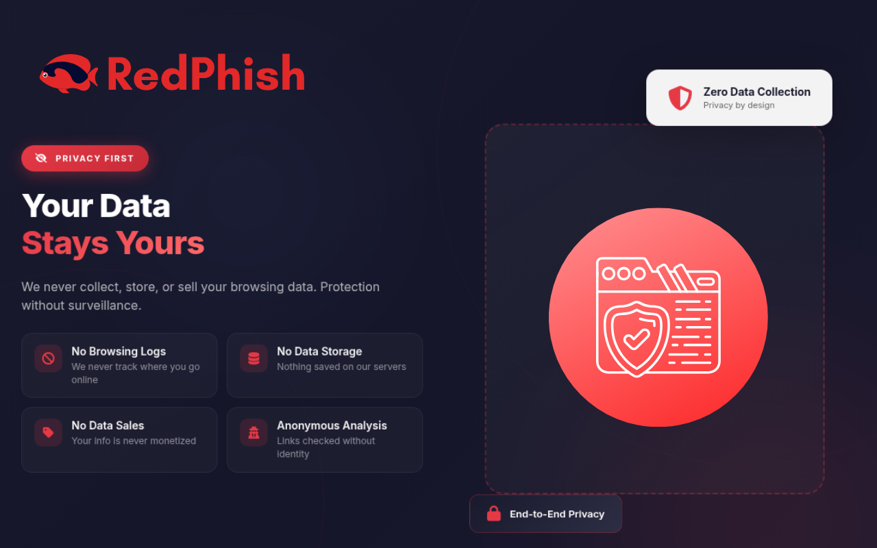 RedPhish | N/A | RedPhish offers real-time phishing protection that automatically detects and blocks malicious URLs. Presented as a shield for a browser, RedPhish helps users to navigate the web with confidence and reclaim peace of mind. Whether it is used for working, browsing, or researching, RedPhish works silently in the background to ensure the user's digital environment remains secure and clean. RedPhish goes beyond simple ad-blocking by offering a comprehensive defense system… | $10 per month |