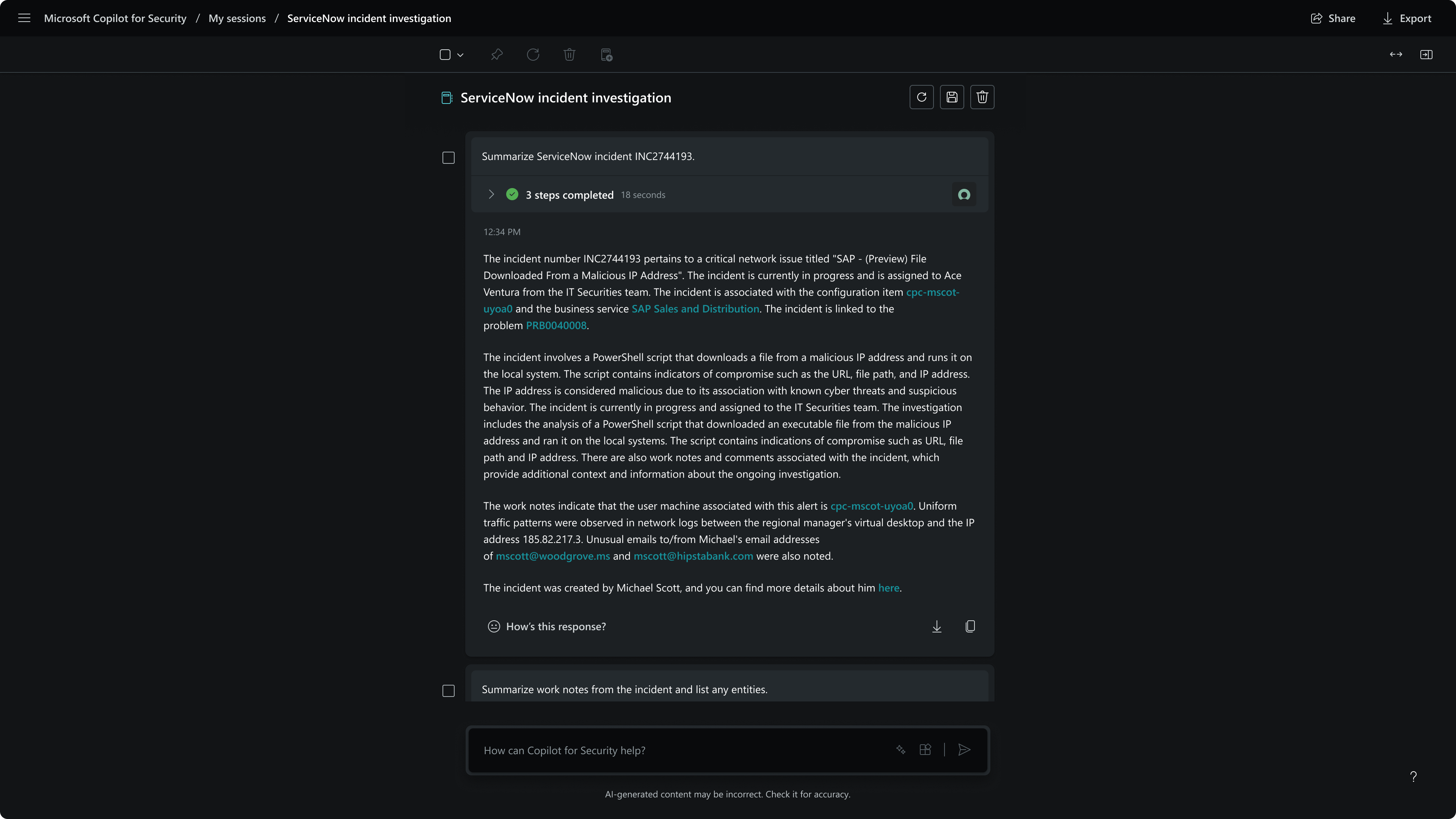 | ScreenShots | Microsoft Security Copilot Screenshots |