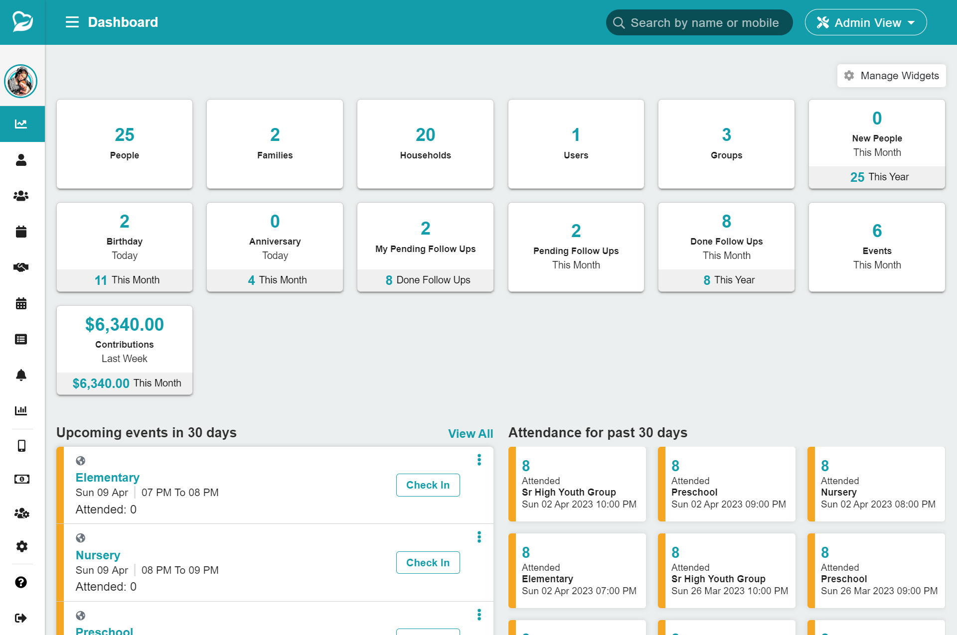 ChMeetings | N/A | ChMeetings is a cloud-based church management system (ChMS), presented as user-friendly and cost-effective. With ChMeetings, users can manage a church's members, finances, events, and communications. ChMeetings also enables users to: Manage members: ChMeetings can be used to keep track of a church's members, including their contact information, attendance records, and giving history. Accept online donations: ChMeetings enables members to donate online. Users can set… | $12 per month for 100 people | |