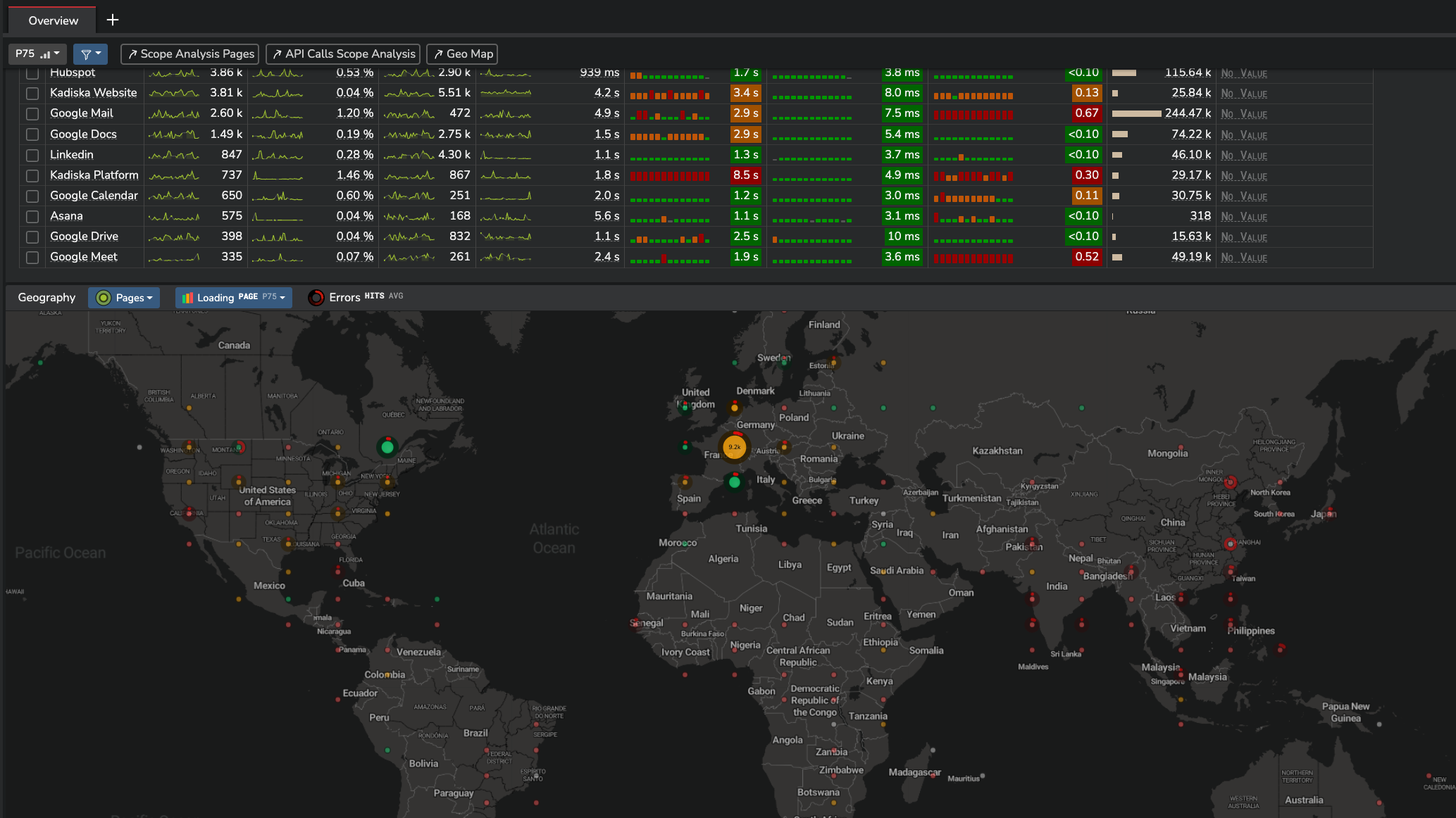 Kadiska Platform | Enterprise companies (1,001+ employees) | Kadiska’s self-driving monitoring platform delivers visibility into the performance of modern applications from both user and network perspectives. Integrated insight across devices, connectivity, cloud infrastructure and applications simplifies performance troubleshooting and optimization so enterprises can deliver an amazing digital experience to their employees and customers. Kadiska can be used to: Track the end-to-end digital experience of modern SaaS and cloud… | N/A |