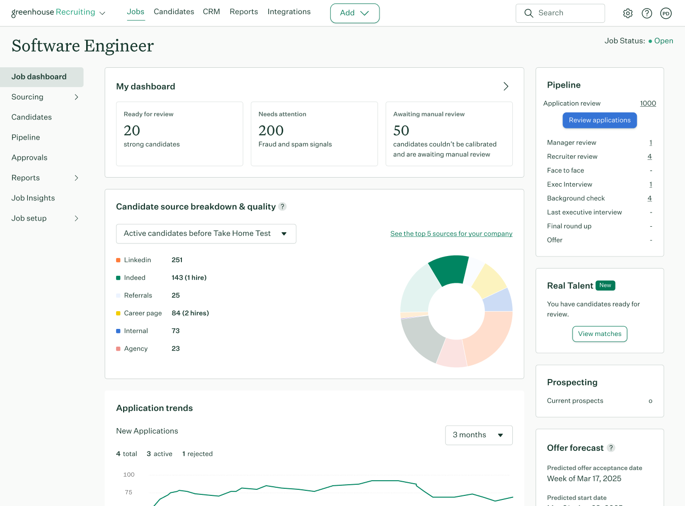 Greenhouse is an ATS for companies of all sizes. Greenhouse's software supports every stage of the hiring process, from sourcing to onboarding, with the goal of empowering companies to hire top talent quickly, consistently and fairly as their business grows.