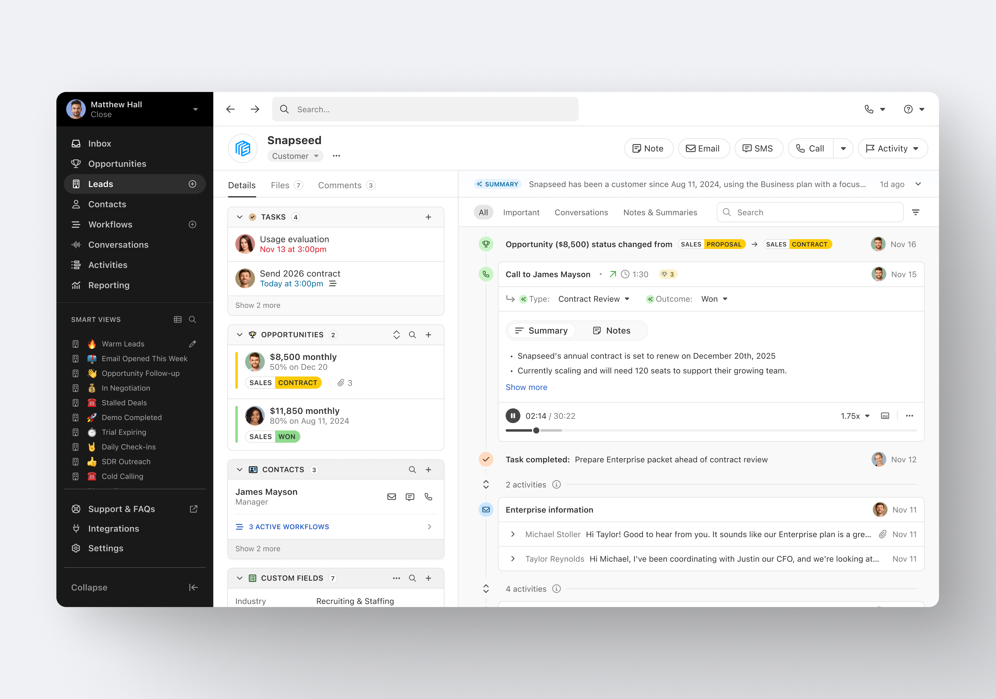Close.io is a customer relationship management (CRM) software with call management and sales workflow automation capabilities.