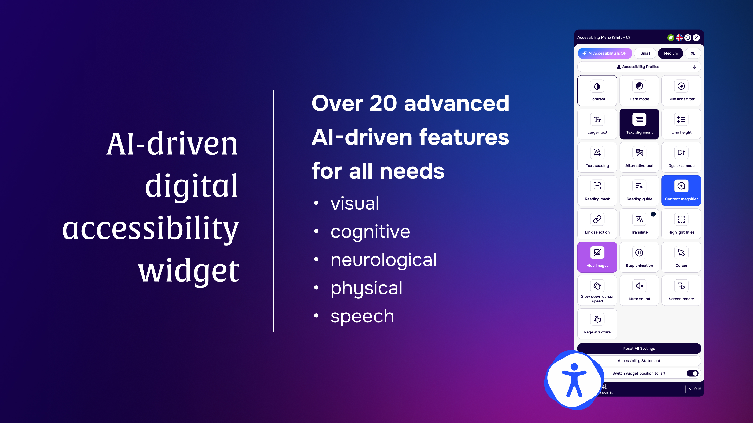 Corpowid | N/A | Corpowid is a digital accessibility platform designed to help businesses make their websites inclusive for people with disabilities and compliant with global accessibility standards like WCAG. Its no-code widget enables implementation without access to the website’s backend, CMS, or server. Corpowid automatically scans websites, generates alt text for images in multiple languages, and injects accessibility enhancements in real time. With features like accessibility profiles, compliance… | $39 per month per installation | |
