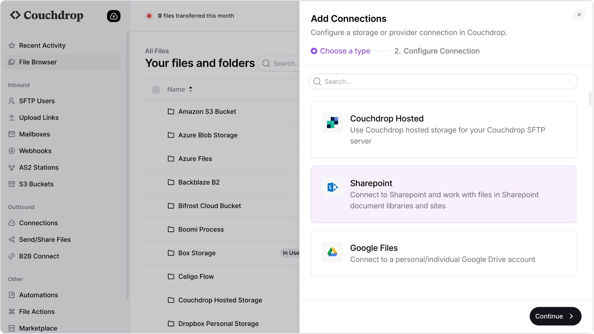 Couchdrop | N/A | Couchdrop is a cloud-native b2b file exchange platform that simplifies secure file transfers across organizations with zero infrastructure management. Supporting direct SFTP, FTP/S, and AS2 transfers, Couchdrop includes multiple file ingestion methods, file sharing, and a no-code automation builder. | $50 per month | |