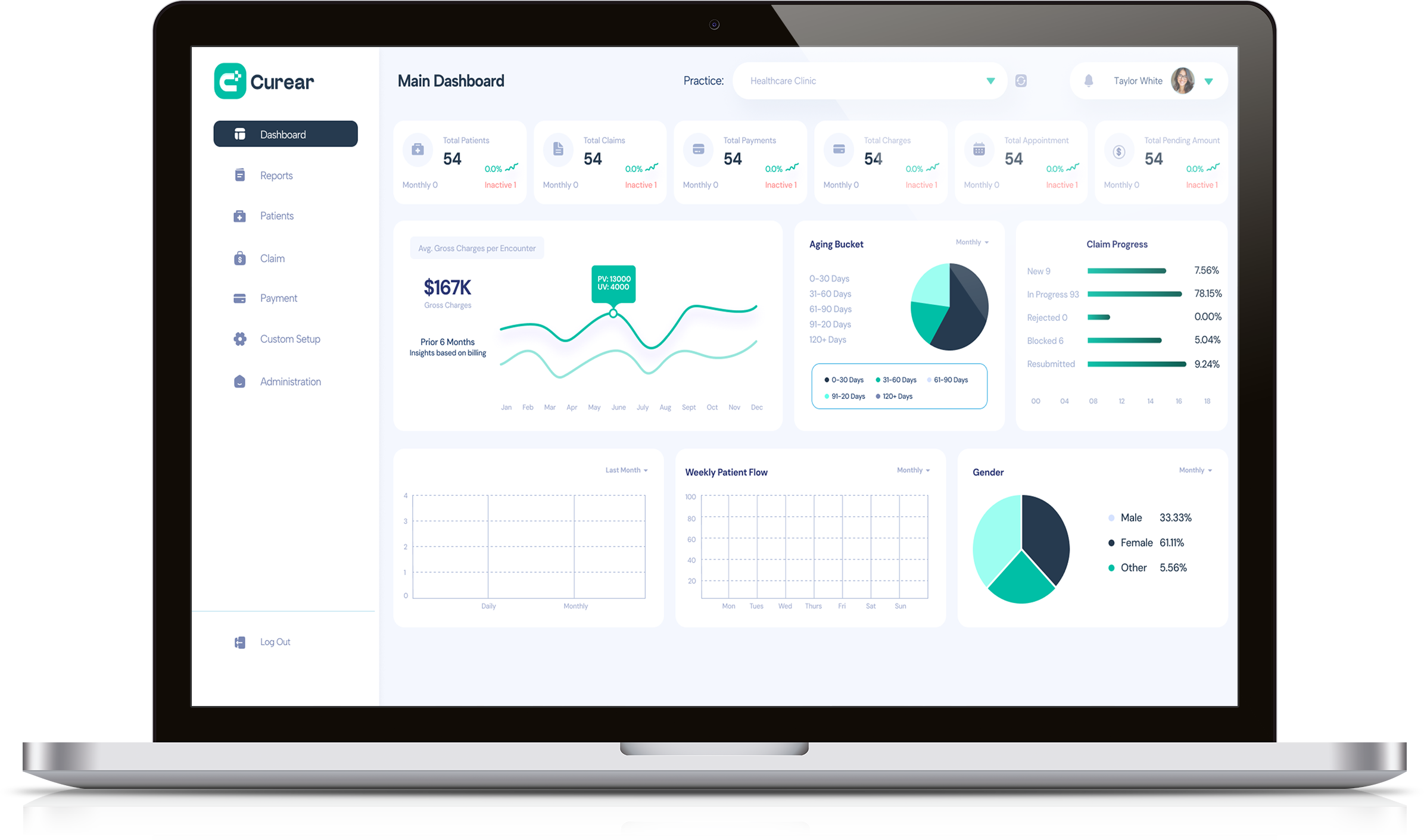 Screenshot of the Cure AR medical billing software for small practices to large healthcare systems.Screenshot of