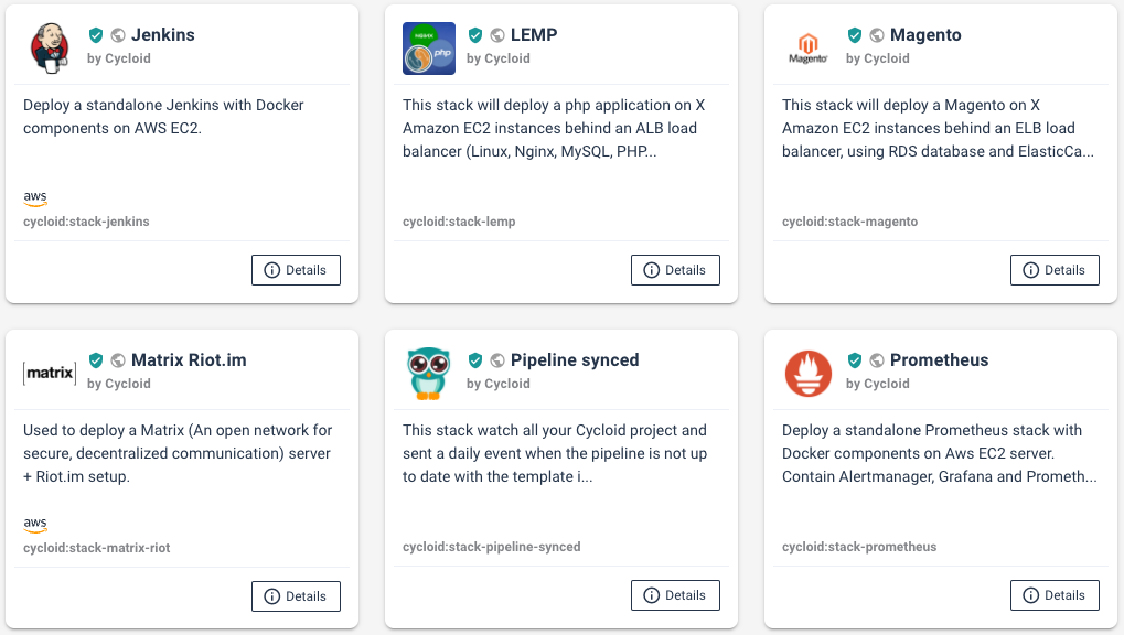 | Additional Details | 3 pricing models are available: - Subscription based - Cloud consumption based - Cloud reselling based (Cycloid is free of charge) Additional monthly platform fee which includes devOps support is applied based on the size and scope of the organization. Full details on Cycloid website. | — | ||||||||||||||
