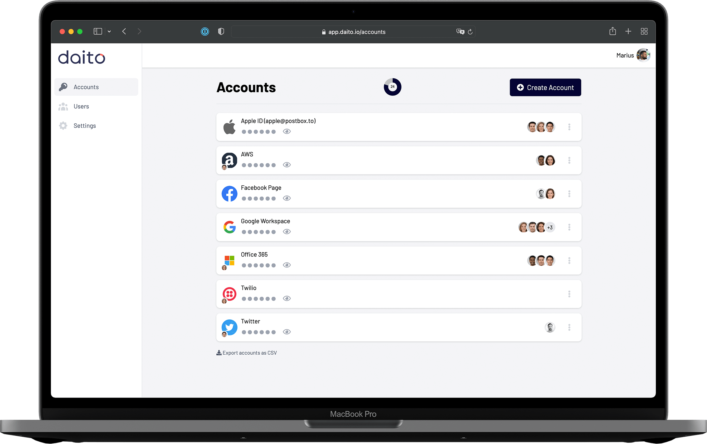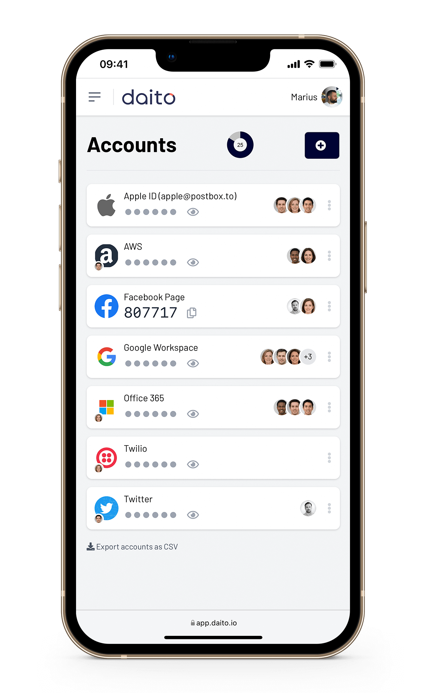 Daito Authenticator | N/A | Daito is a specialized TOTP 2FA authentication solution that helps manage 2FA & MFA for shared accounts. It is a web-based solution that enables users to ditch phone-based 2FA Authenticators (such as Google Authenticator) and that additionally enables users to share 2FA tokens with team members. Daito supports migration from Google Authenticator and exporting secret keys in a CSV file. | N/A | |