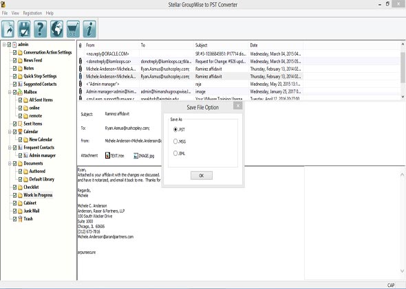 Stellar Email Converters | N/A | Professional GroupWise to Outlook PST Converter Software that helps users to export GroupWise emails, contacts, calendars, folders etc. to Outlook PST File and Office 365. Hence, user can save the converted data into PST File at the desired location. With an easy-to-use interface, you can quickly be familiar with all the software features and do the GroupWise Mailbox to Outlook conversion easily. To do the conversion process, you need to select the desired mailbox and options… | $199 Single System |