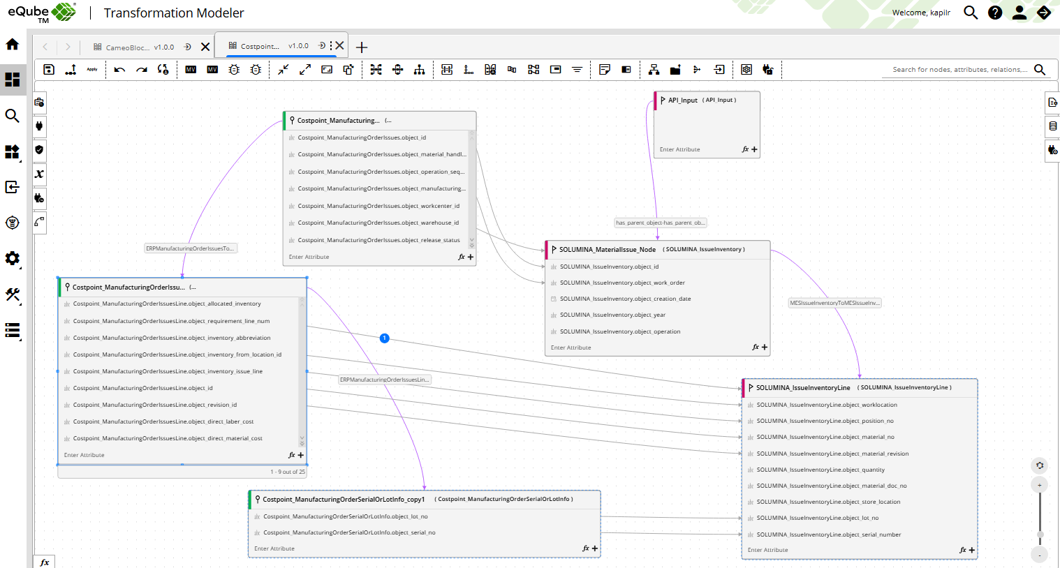 eQube®-TM | N/A | eQube®-TM, Transformation Modeler, establishes a catalog of 'models' and 'transformation maps' for Data Federation, 'For-Purpose' Apps, Application Integration, and Migration Solutions. Its interface allows developers to visually define, maintain, and update data transformation 'maps' and solution 'models' between source and destination data elements (objects, relational DB tables, files, XML, JSON, etc.). The catalog stores connected applications' data models, maps, and rule-based… | N/A |