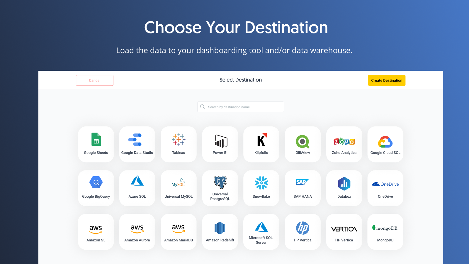 Dataddo | Mid-Size Companies (51-1,000 employees) | Dataddo is a fully-managed, no-code data integration platform that connects cloud-based applications and dashboarding tools, data warehouses, and data lakes. It offers 3 main products: - Data to Dashboards, which lets users send data from online sources straight to dashboarding apps like Tableau, Power BI, and Google Data Studio for insights in record time. A free version is available for this product. - Data Anywhere, which enables users to send data from any A to any… | $0 per month | |