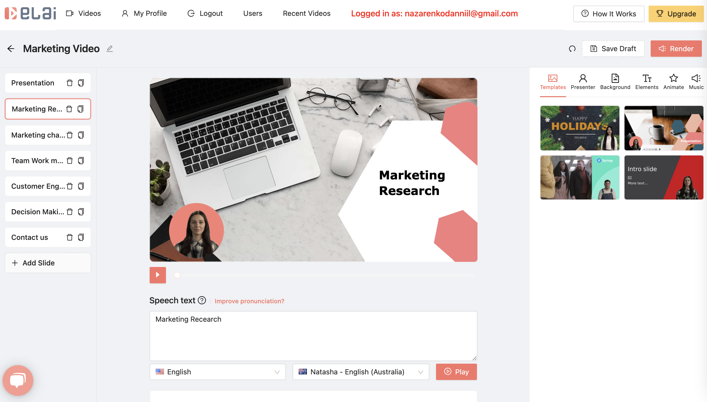 Elai.io is text-to-video platform that allows users generate engaging video content with real people in the frame just from text. Customers are able to pick digital avatars for their videos from the library or request a custom avatar that will be made from their video footage. Elai.io supports 40+ languages.