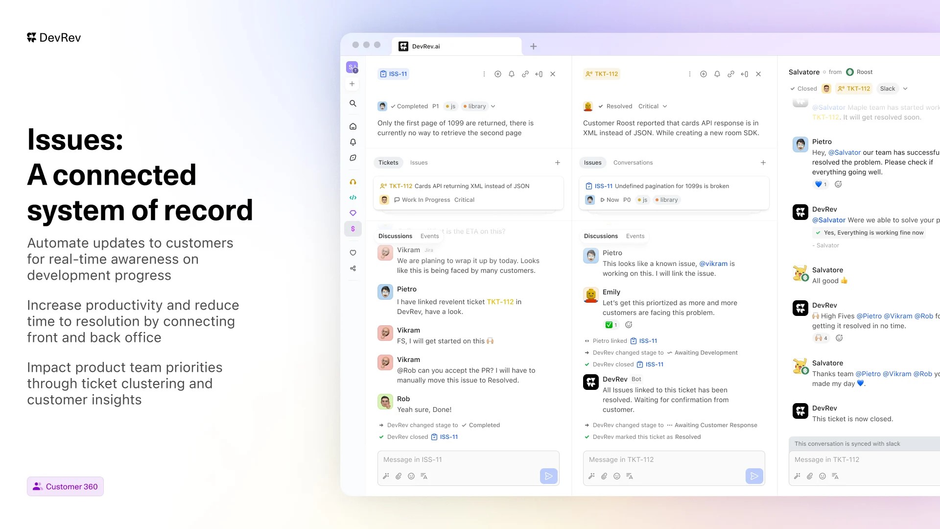 DevRev is a platform for SaaS and technology companies, helping back-office development match the rapid pace of front-office customer relationships. The vendor states its mission is to bring end users, support engineers, product managers, and developers together to create a company-wide culture of product and customer-centricity.