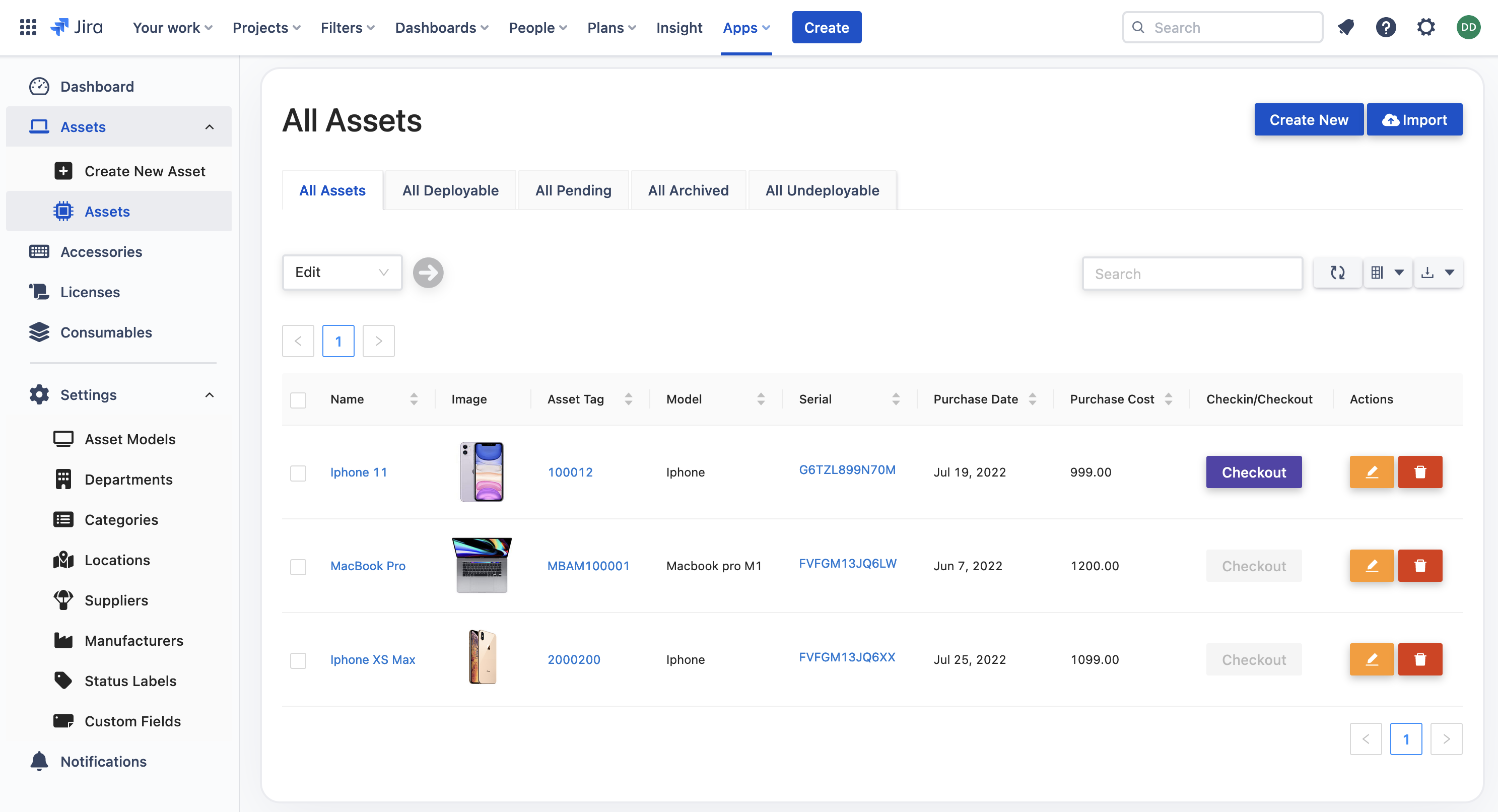 AssetIT by DevSamurai | N/A | AssetIT is an Asset Management tool for Jira. Designed for organizations of all sizes to track physical (hardware) assets, software assets (licensing), and consumables. AssetIT is customizable to fit unique needs with different asset types and processes. Features: Asset categories and models to group common features Asset details, assigned to whom, and their physical location Custom fields for additional asset attributes … | N/A | |