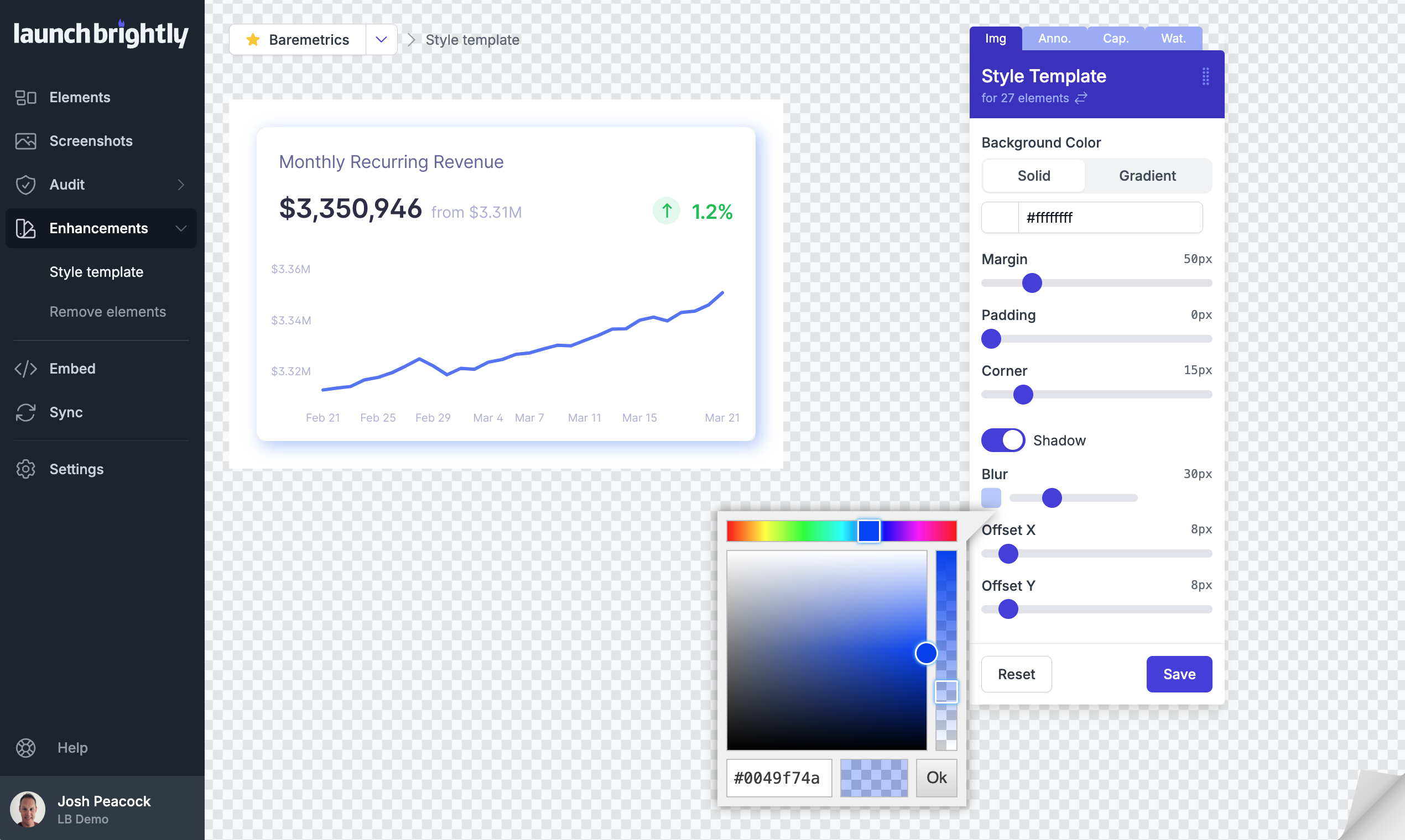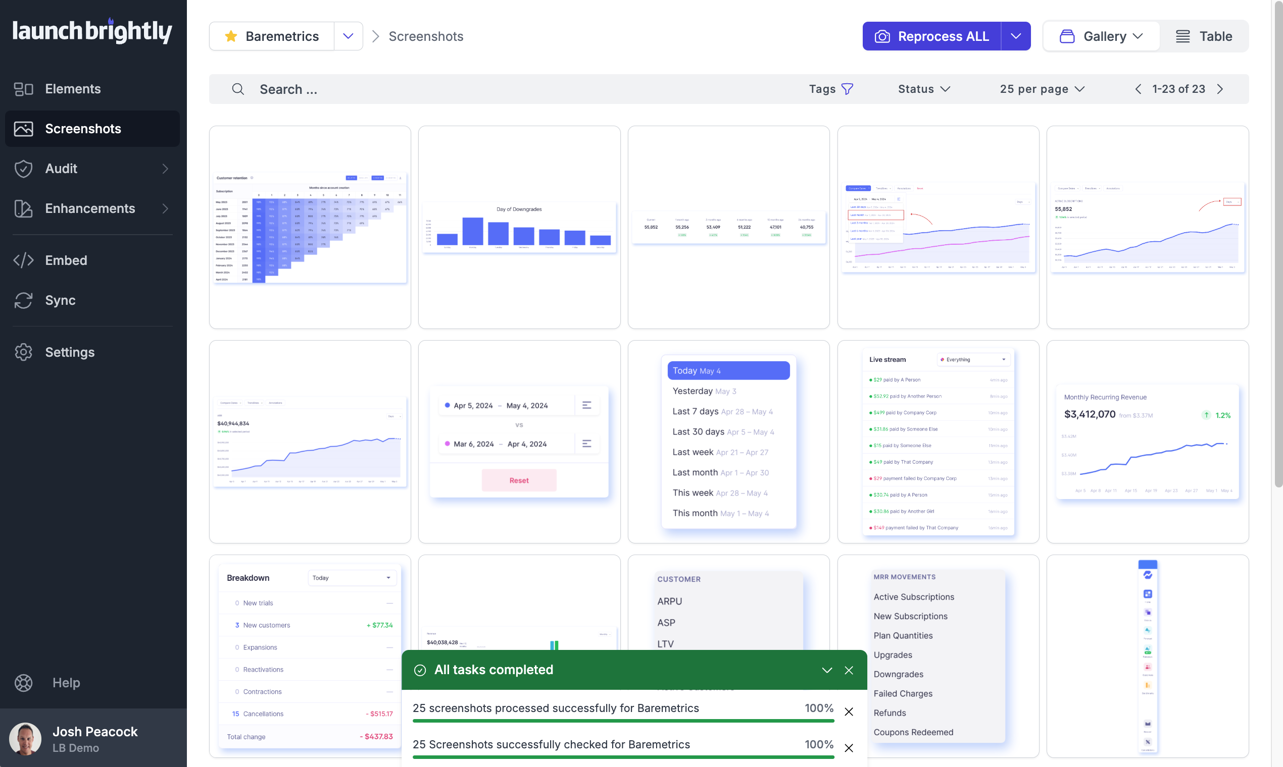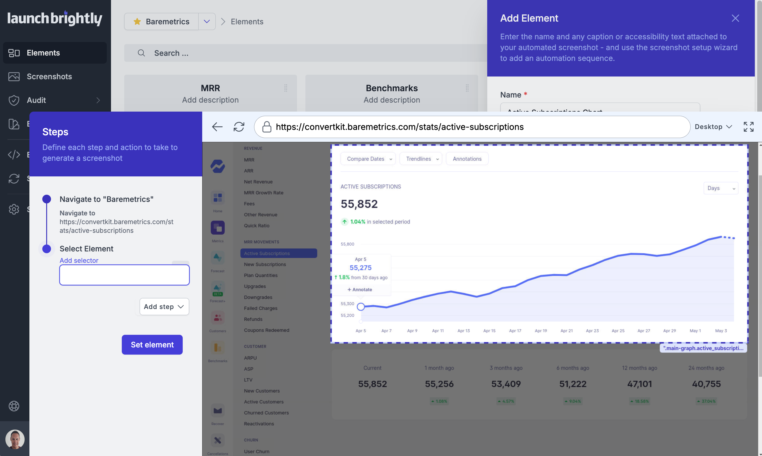 LaunchBrightly | N/A | LaunchBrightly’s screenshot automation platform enables users to set up simple automation recipes to auto-generate the latest screenshots of a product and, automatically and continuously, update the screenshots in a help documentation as the product changes. | $275 per month per screenshot generated |