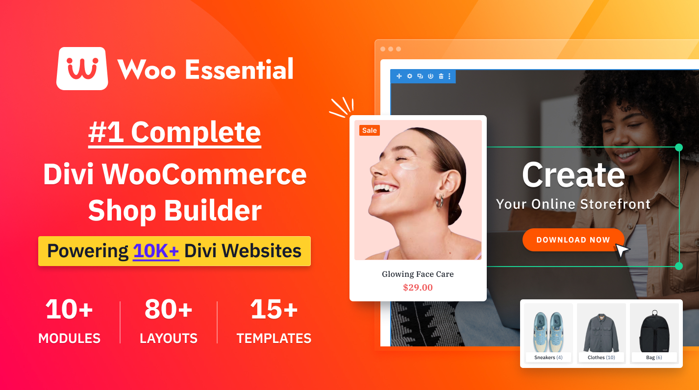 Woo Essential | N/A | Woo Essential is a solution designed to optimize and streamline WooCommerce store functionality. Integrated with Divi, this toolkit offers key features to enhance the shopping experience, boost conversions, and simplify store management—without the need for coding. | $49 per year single website |