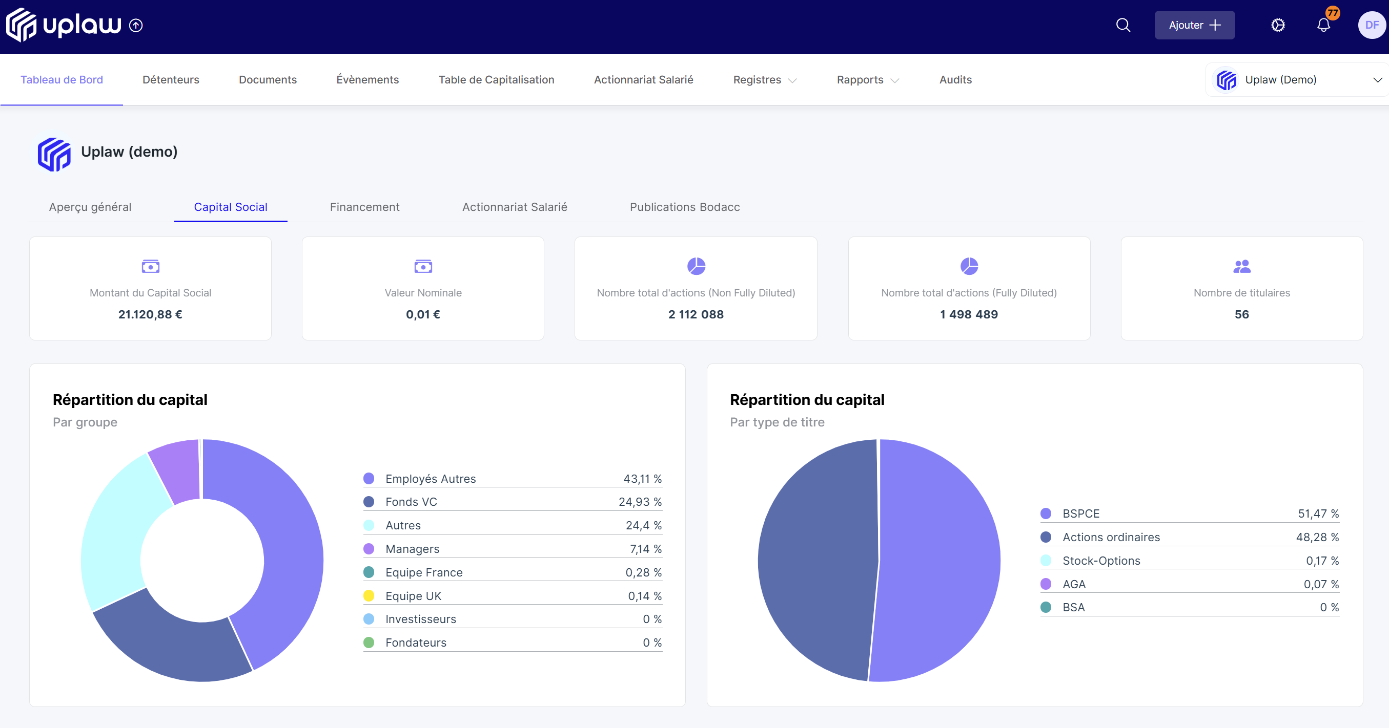 Uplaw | Small Businesses (1-50 employees) | Uplaw is an equity management solution helping CFO, Legal and HR teams managed their equity. Uplaw digitalizes captable and Employee Stock Options Plans, and provides tools for tracking employee stock options, managing cap tables, and facilitating shareholder communications. Uplaw simplifies equity management workflow, and helps to ensure that organizations can stay compliant with regulations while providing transparency to employees and investors. Its open API and… | $1,200 per year per installation |