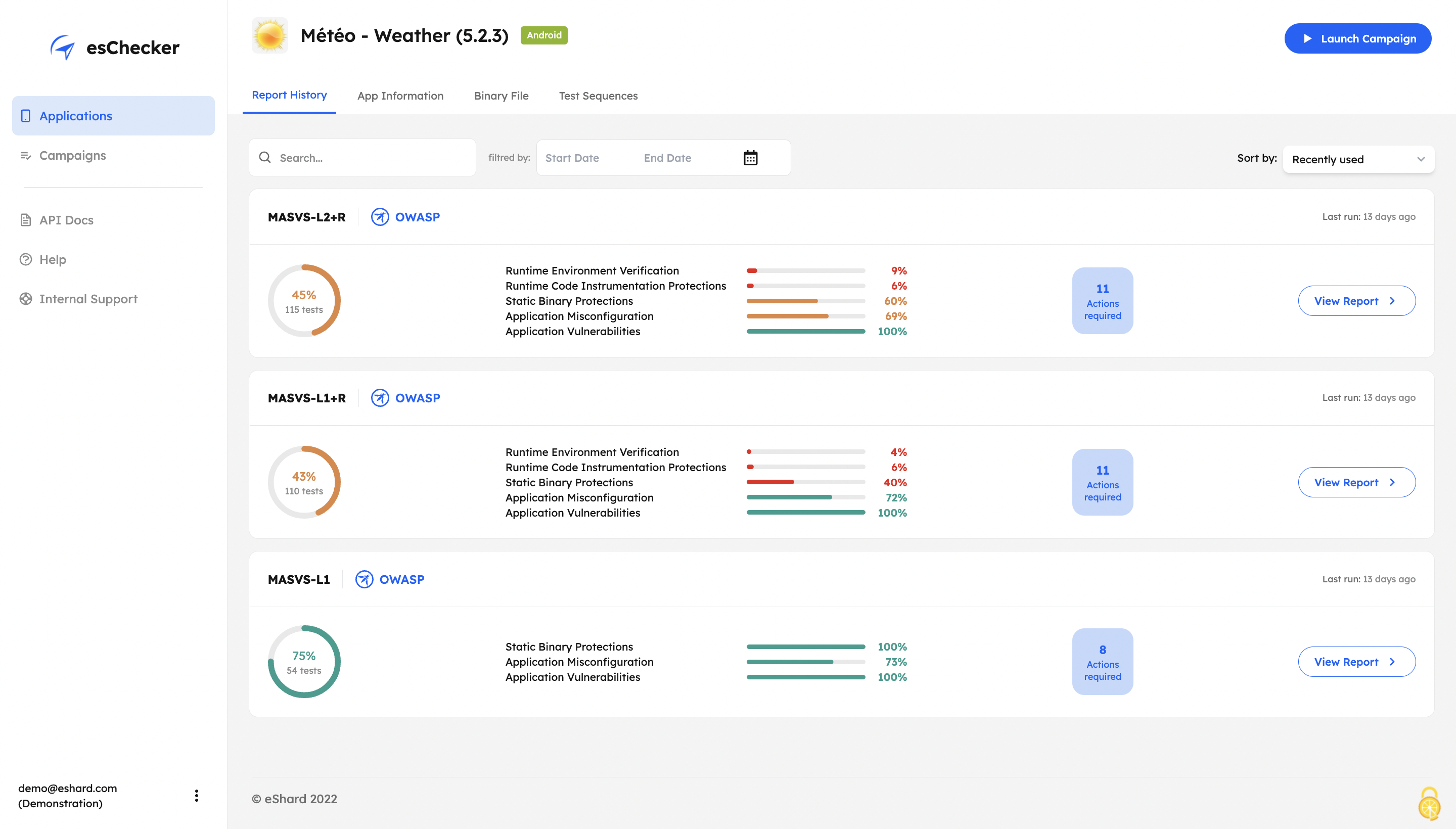 esChecker | N/A | esChecker: a MAST by eShard esChecker combines years of penetration testing experience with a dynamic engine simulating attack techniques. No source code is needed, only the app binary (Android apk or iOS ipa). It takes 30 minutes to find out how an app reacts against many hacking techniques, so that the user can now reserve pentest budget to in-depth vulnerability analyses. What is a MAST? Mobile Application Security Testing solutions implement security… | N/A | |