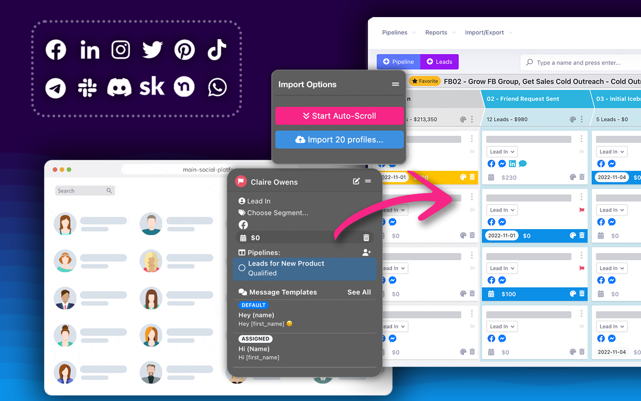 FlowChat | Small Businesses (1-50 employees) | FlowChat is presented as a social selling and chat management software platform that supports Marketing Agencies, Coaches or Consultants, and Sales Team Leaders to ensure consistent revenue growth and streamlined operations. The software can import leads from 13 social media platforms with a single click, with the goal of helping users to convert social engagements into leads. | $247 per month | |