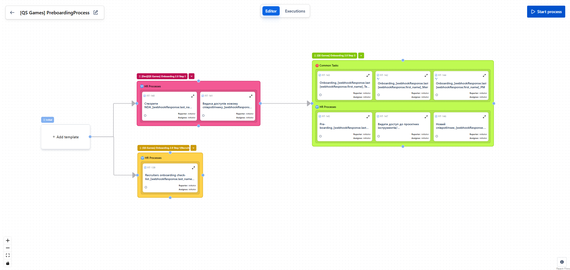 FlowX — No-Code BPM Automation | N/A | FlowX for Jira is a no‑code tool for designing business processes directly on top of standard Jira tasks. It enables building smart task chains, managing data flow between steps, and integrating with external systems without writing a single line of code. The goal is to eliminate manual routine (e.g., onboarding/offboarding), increase execution transparency, and accelerate delivery across teams. Key Features Flow Editor. Processes are designed visually: create… | N/A | |