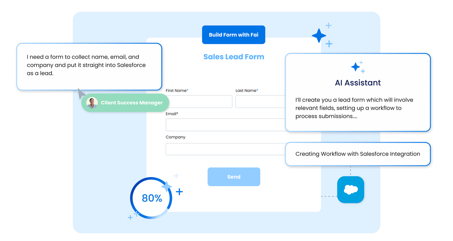 FormAssembly | N/A | FormAssembly is an enterprise data collection and automation platform that enables organizations to capture clean, compliant data from the start. With the latest edition of the platform, FormAssembly Atlas, and its built-in AI assistant, Fai, forms and workflows build themselves, connect to Salesforce and other systems in just a few clicks, and ensure every record is structured, secure, and ready for automation or AI. In short, FormAssembly is designed to eliminate the manual work of… | $59 per month | |