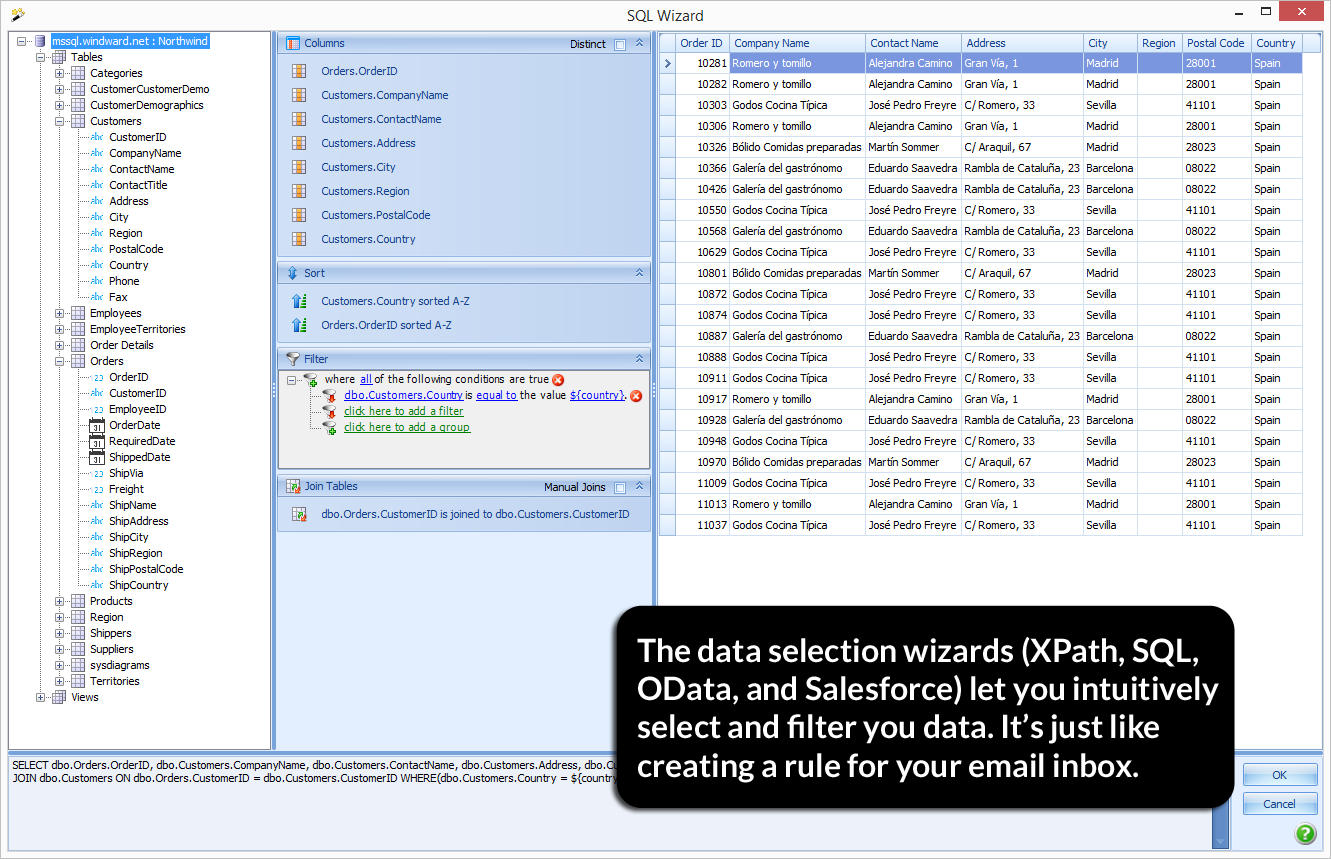 Ease of use -- once the data sources are set up, creating tables is as simple as drag and drop (okay, maybe not exactly that simple, but you can certainly create a table of data using drag and drop, then format it and manipulate it as needed).