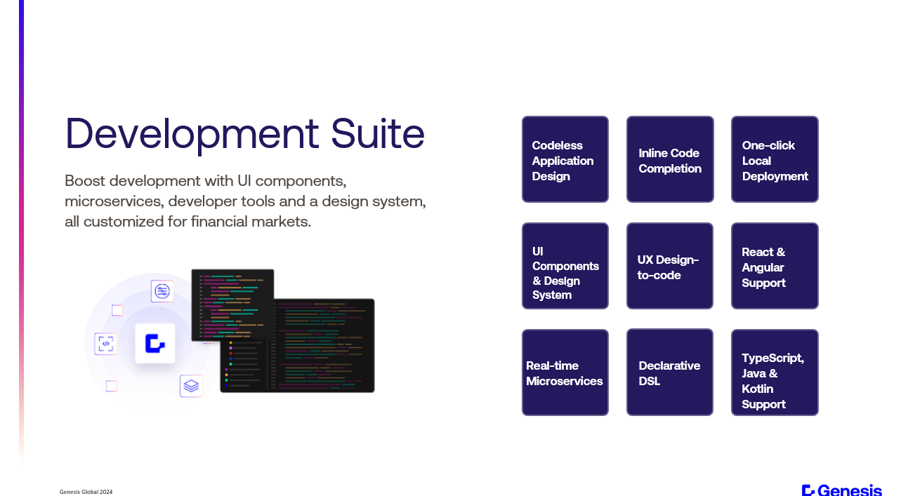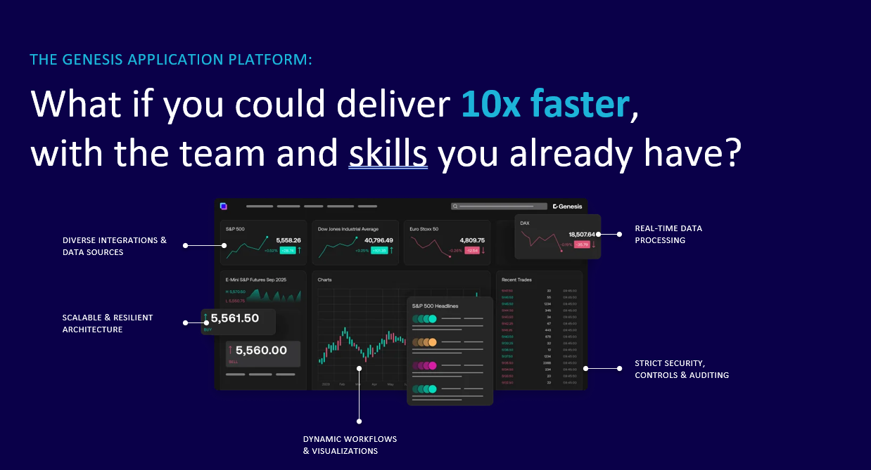 Genesis Global | Enterprise companies (1,001+ employees) | Genesis provides financial market organizations with a low-code platform that enables developers to build applications. | N/A | |