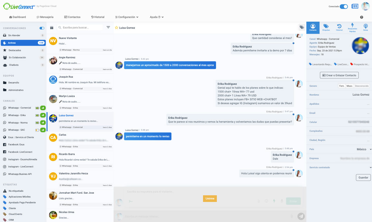 LiveConnect by PageGear | N/A | A platform that allows multiple agents from a sales team or customer care team (or chatbots easely to setup) to attend conversations received through a business's WhatsApp, Telegram, Instagram, Facebook Page or Website, while keeping a record of everything that happens within these conversations, with real-time statistics and centralized chats. It is used to streamline customer service and sales with chatbots. Nowadays bots are common tools found everywhere and that are used by… | $77 per month Pay by use |