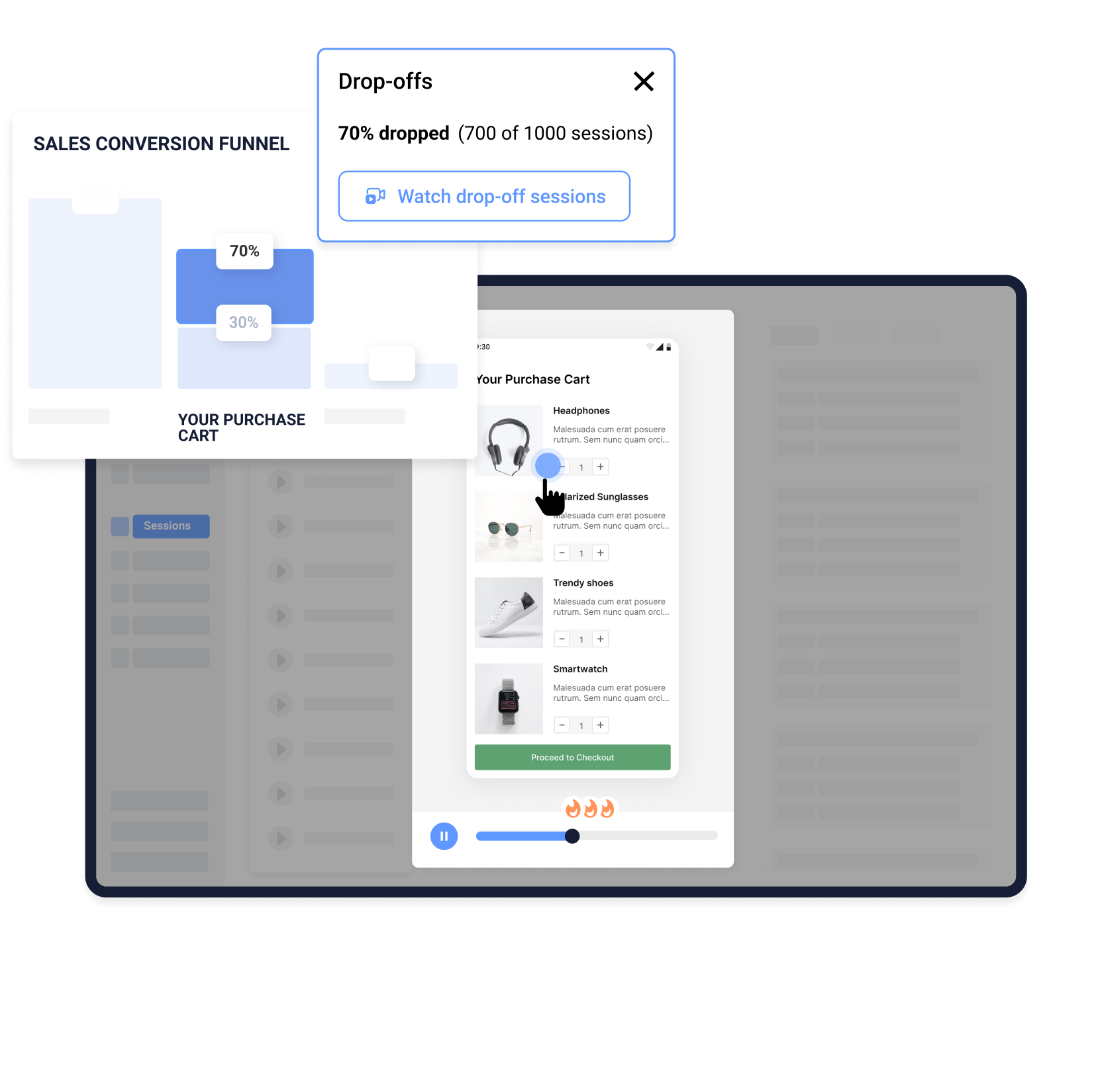 UXCam App Analytics help identify the user pain points and improvement areas within our app. It helps observe the app from a customer's perspective and hence communication around any new updates with stakeholders get easy. These can be times when we aren't able to view the complete recordings due to delays in loading or randomisation of samples.