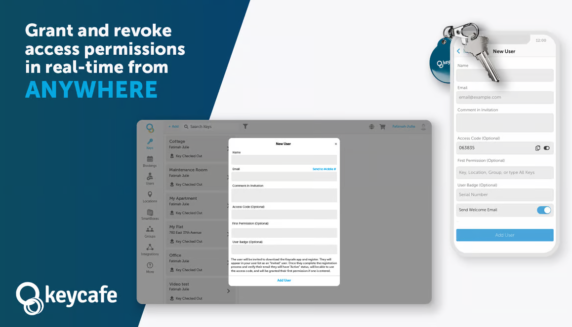 Keycafe tracks all keys from a single account. Access only to trusted staff, contractors, tenants, or customers. The Keycafe SmartBox installs on any wall type.