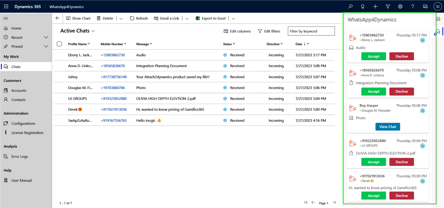 | ScreenShots | WhatsApp4Dynamics Screenshots |