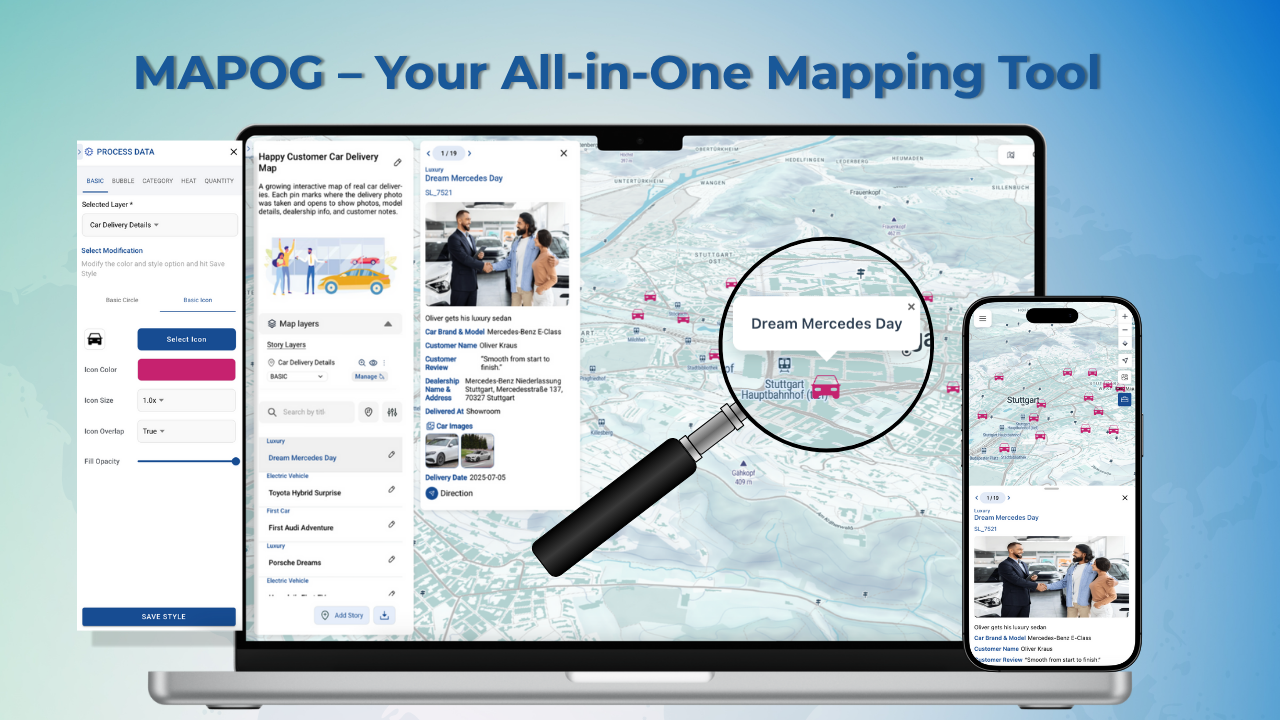MAPOG | N/A | MAPOG is a mapping platform that transforms locations, projects, portfolios, and data into interactive visual maps. Instead of scattered files or reports, users can import data from CSV or Excel and display every site on a single map with photos, videos, links, and key details for each point. Users can add custom base maps using geo-referencing to showcase campuses, layouts, or property overviews, and use bearing angle measurement for navigation, planning, or… | $7.50 per month per user |